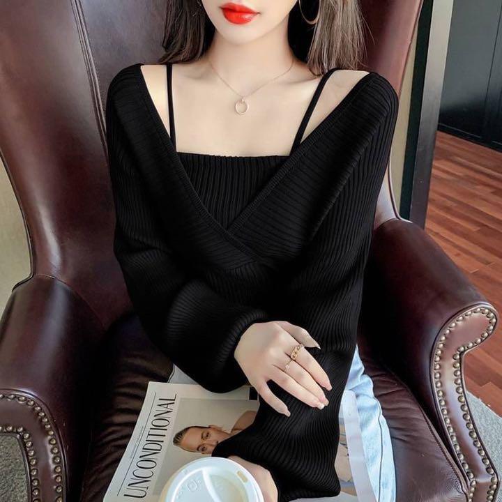 Product name: オフショル《ブラック フリー》ニット セーター モテ 可愛い 肌見せ トップス 華奢見え効果 上品 高級感 清楚 着痩せ 細見え セクシー 398