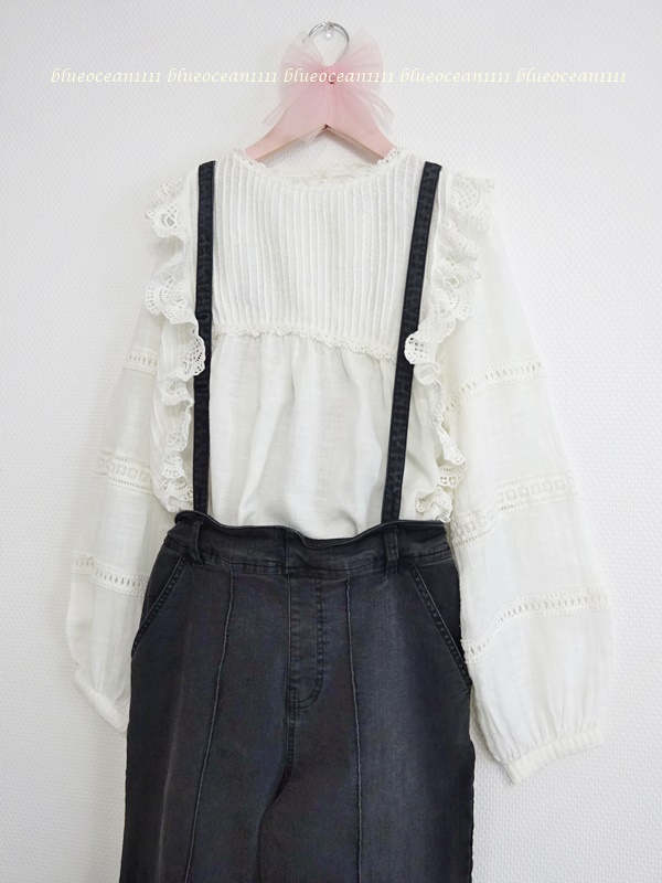 贅沢にあしらわれたレースフリルがとても繊細でフェミニン、どこから見ても素敵なコットン素材のロマンティックブラウスです♪