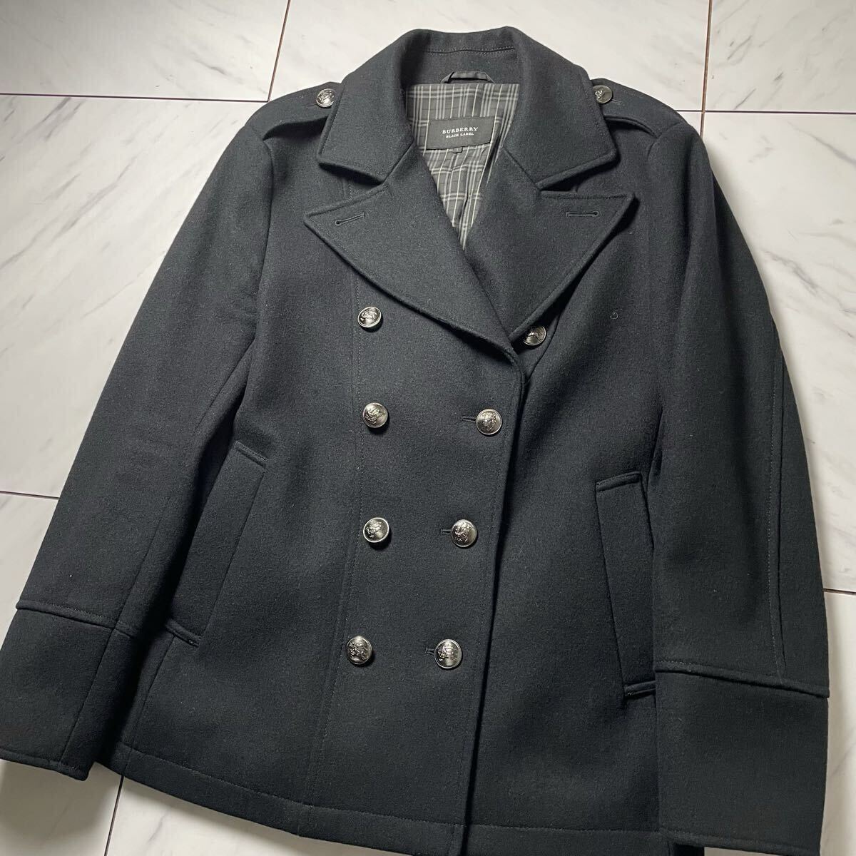 Product name: BURBERRY BLACK LABEL Pコート ホース ナポレオン メルトン ウール ナイロン メタルボタン 黒 メンズ バーバリー ブラックレーベル L