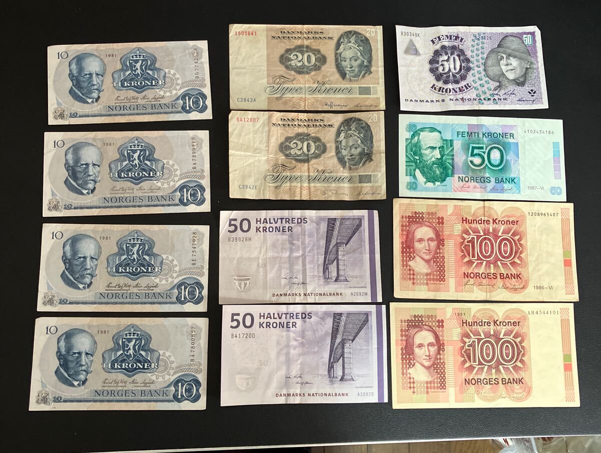 世界外国の紙幣【ノルウェー デンマーク 】12枚まとめて 折れ 汚れあり ③ ★17