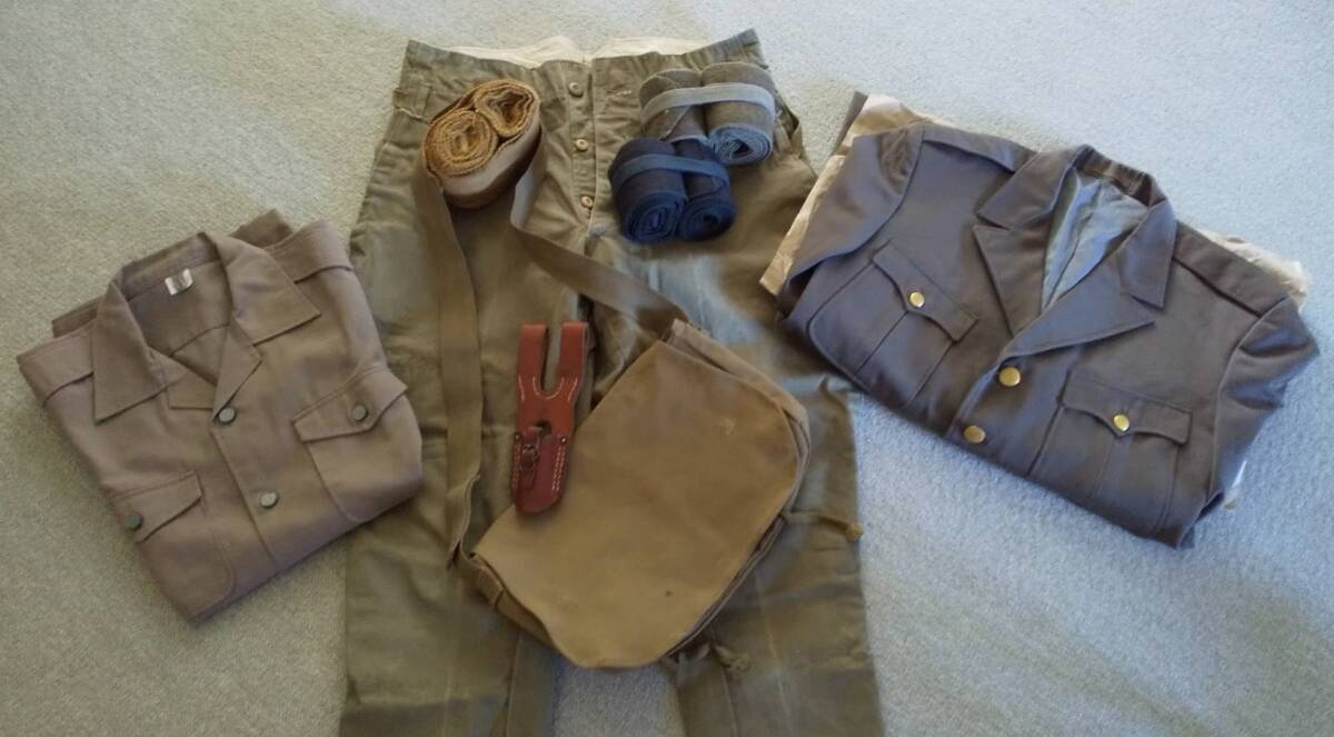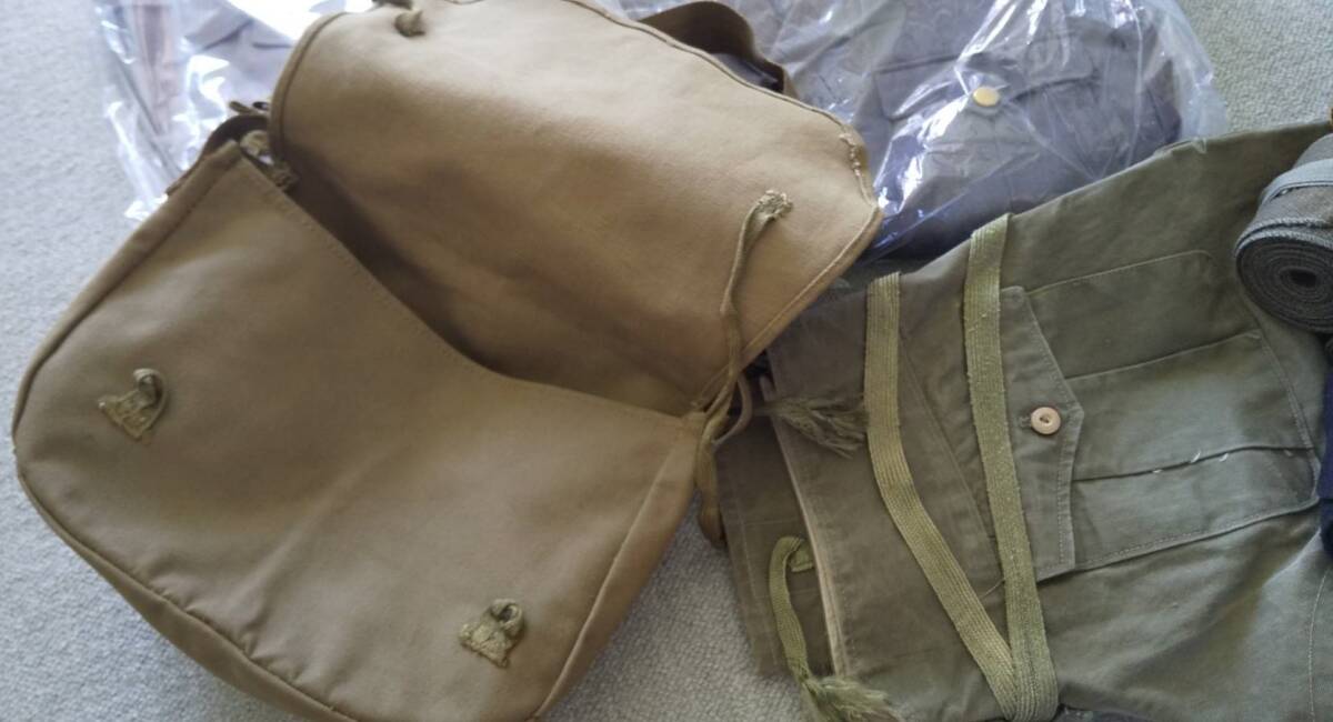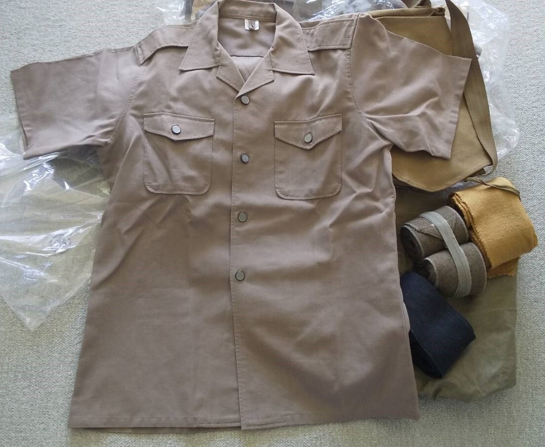 今年「昭和100年 戦後80年」記念行事で使用された劇団ミュージカルの衣装舞台。将来使用されない物として衣装自給部より選定された物数点最後の品で御座います。売上金は新たな衣装購入費用に充てられます。どうぞご協力下さい。品は全部で8点。背広型制服1972年製 実寸肩幅44 胸囲95 袖寸58 着寸70各cm ラベル3A号。半袖制服製造年不明 実寸肩幅43 胸囲105 袖寸23 着寸72各cm ラベル2号。綿製パンツ腰ひも、裾ひも付き 全長97 腰回86 股上25 股下63各cm ラベル印刷印無の為製造年不明品。厚手布製カバン製造年不明。各ゲートル共々製造年不明。革製剣帯 製造年不明。以上画像確認の上 興味のある方宜しくお願い致します。送料無料で御座います。