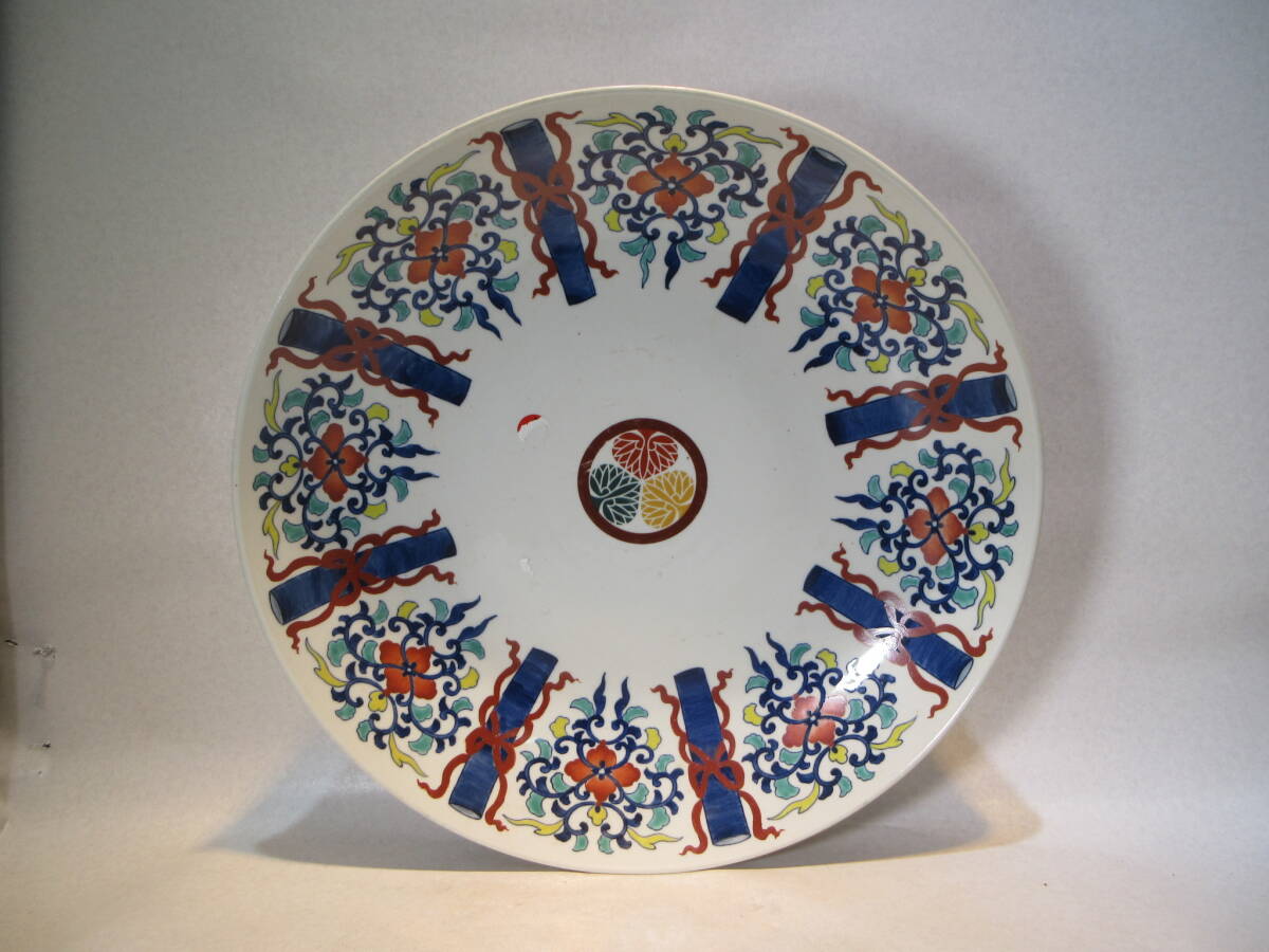 Product name: T2659 南紀徳川家旧蔵品 三つ葉葵紋 色絵巻物唐花文大皿 図録同手品 1尺4寸皿 直径45.3cm 5.2kg