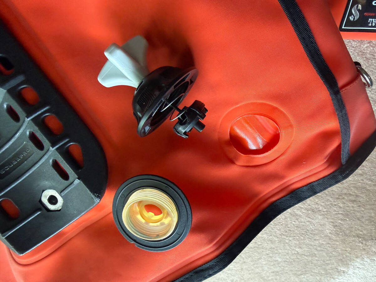 ちなみにこのモデルでは周知のトラブルで、いずれ肩のバルブも同様に壊れるらしく、現在の代理店、KINUGAWAや購入したスキューバプロショップ横浜に問い合わせましたが修理は不可で、唯一修理可能だとの返事があったのは、沖縄の旭潜水技研ですが、かなりの高価なので、諦めました。