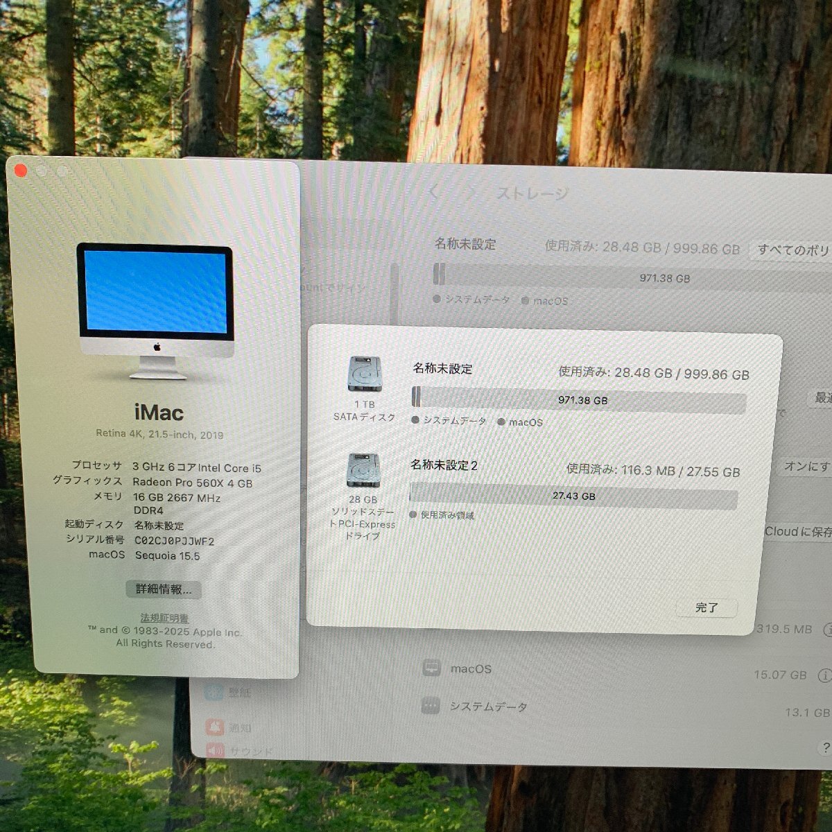 ◆美品◆iMac19.2(Retina 4K, 21.5インチ, 2019)RAM:16GB ROM:Fusion Drive HDD1TB+SSD 28GB,3.0GHz6コアIntel Core i5-8500/C02CJ0PJJWF2