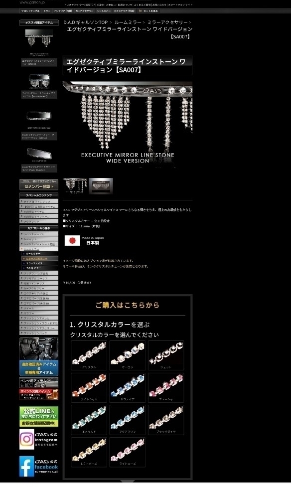 Product name: ☆DAD ギャルソン エグゼクティブミラーラインストーン ワイドバージョン クリスタル☆