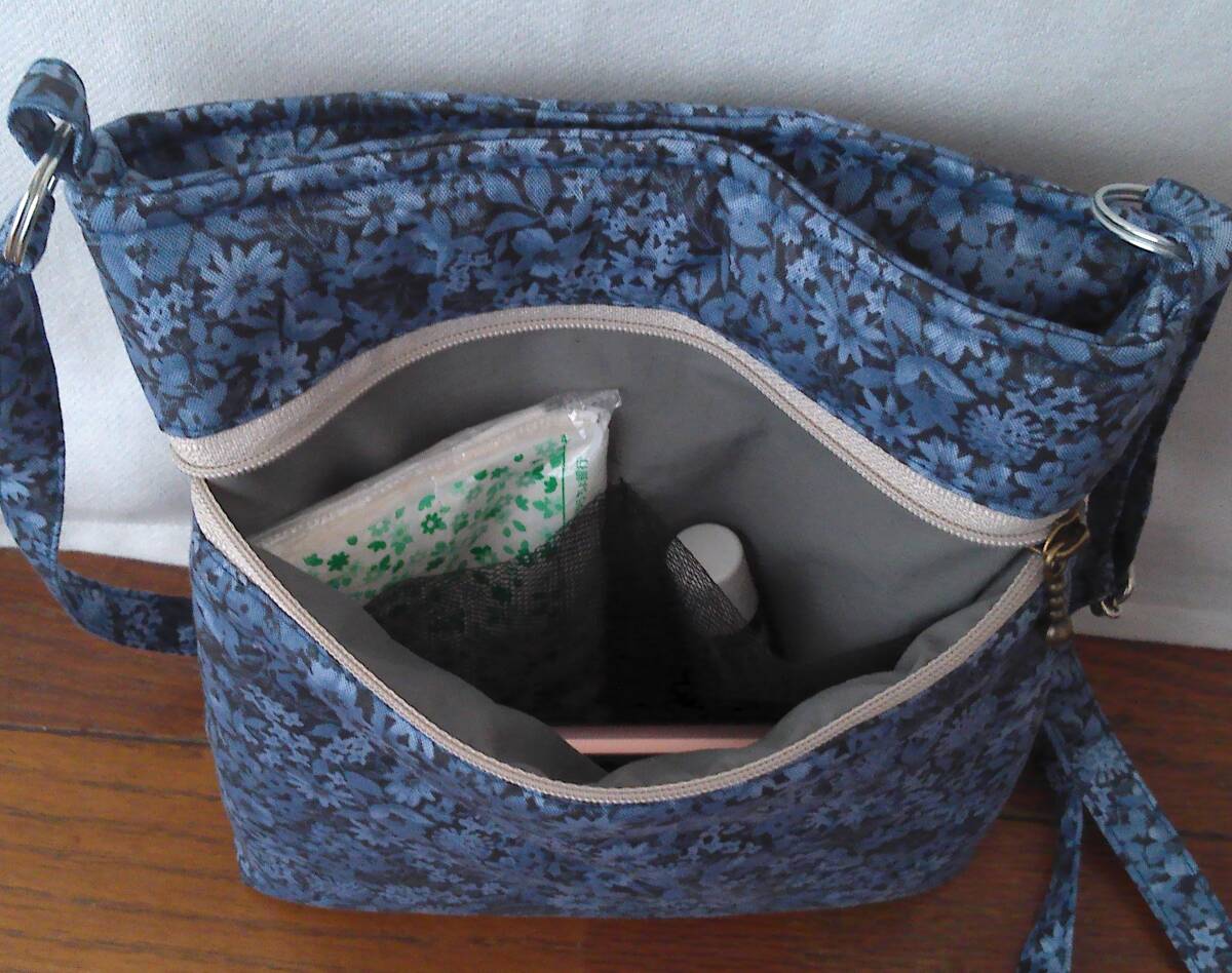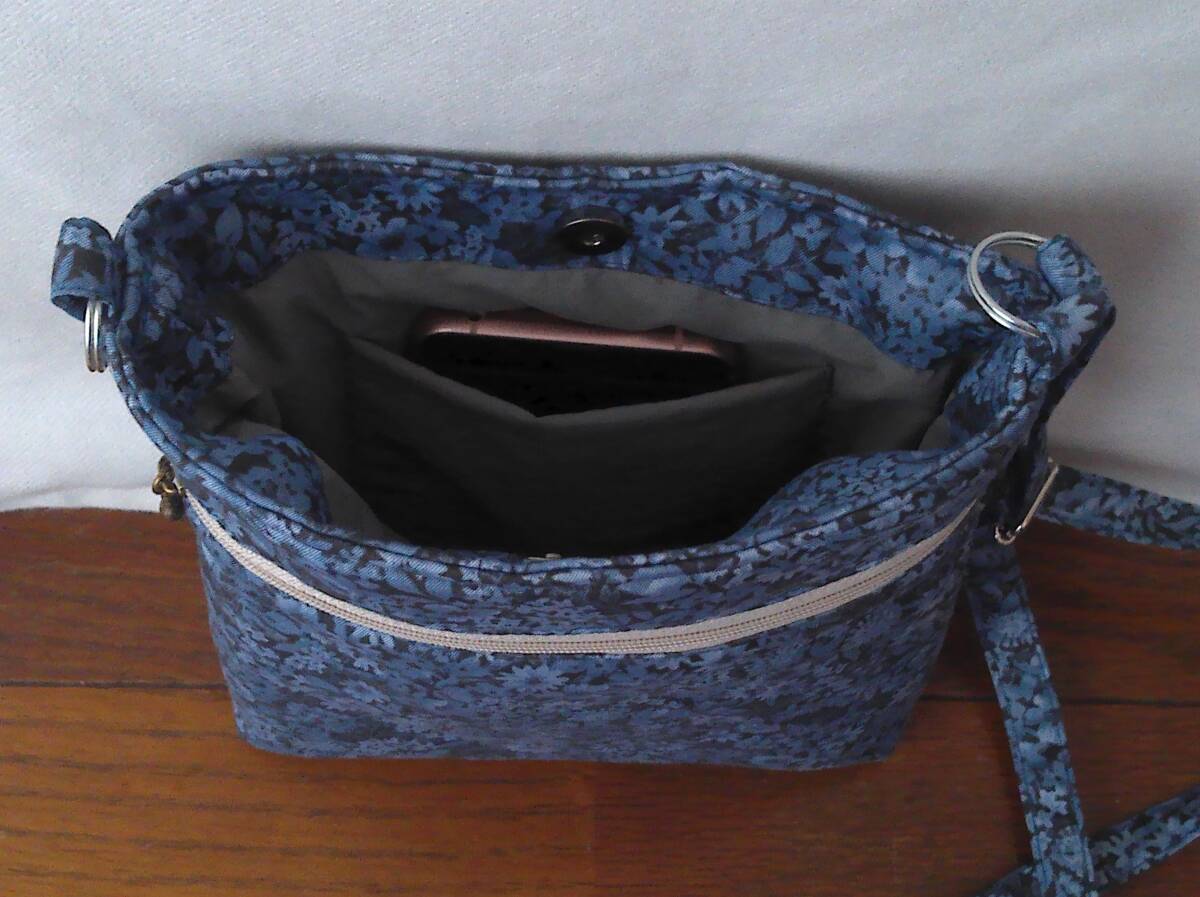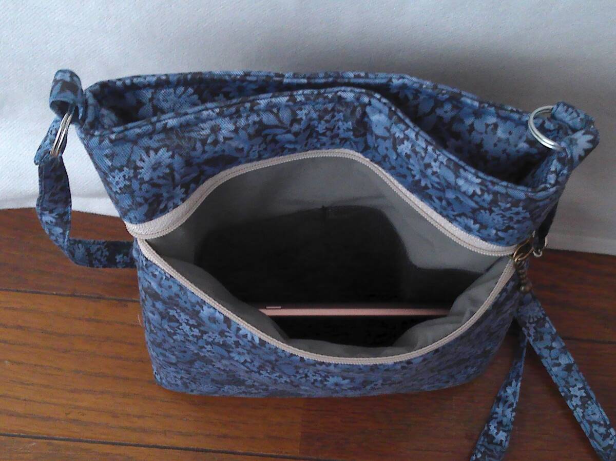 Product name: ★縦長ショルダー★紺地ブルー小花多花葉っぱ