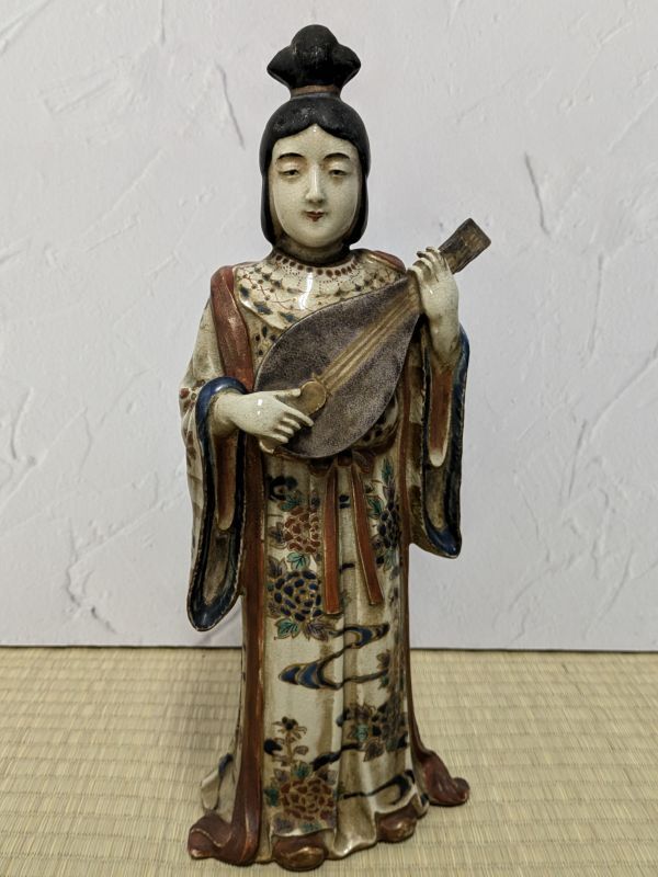 Product name: Mn3546 野々村仁清作 御室焼色絵像 「弁財天」 床荘床飾り 七福神 京焼清水焼茶道具