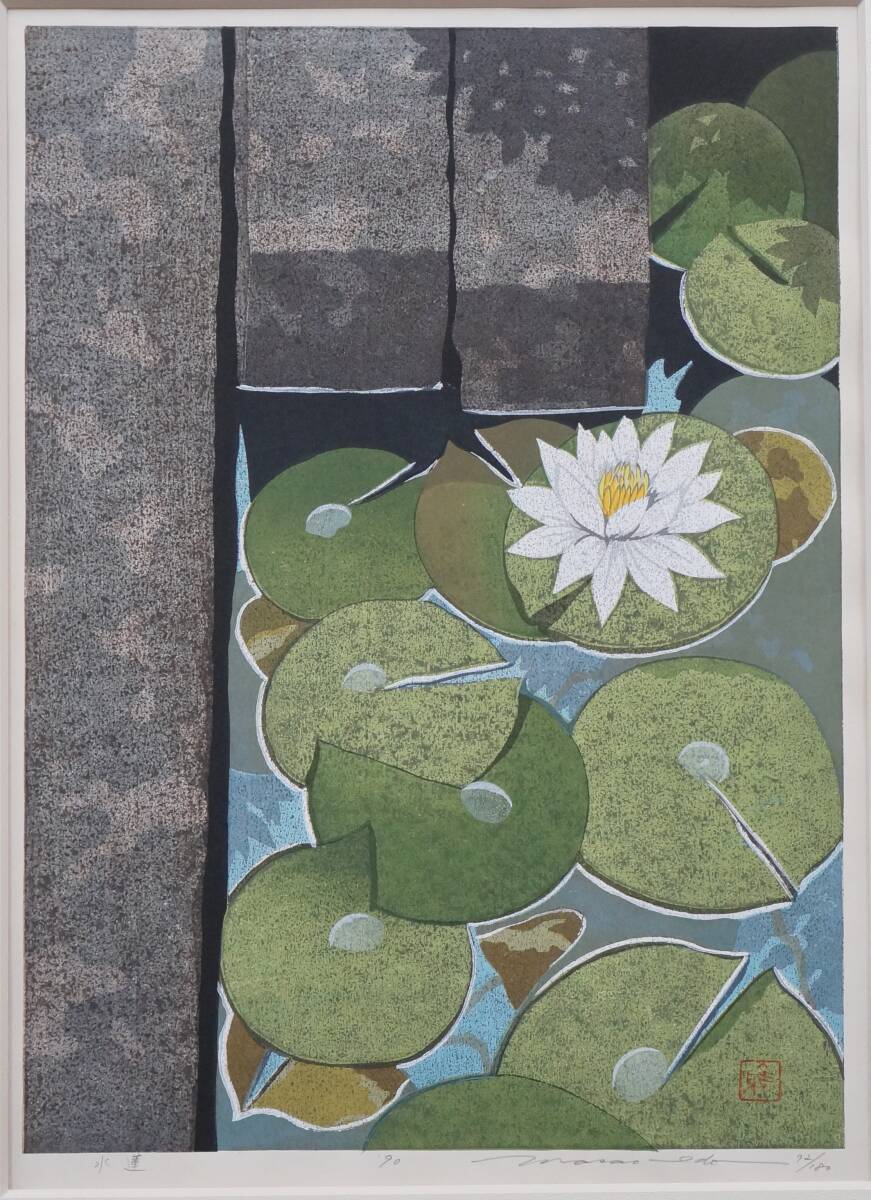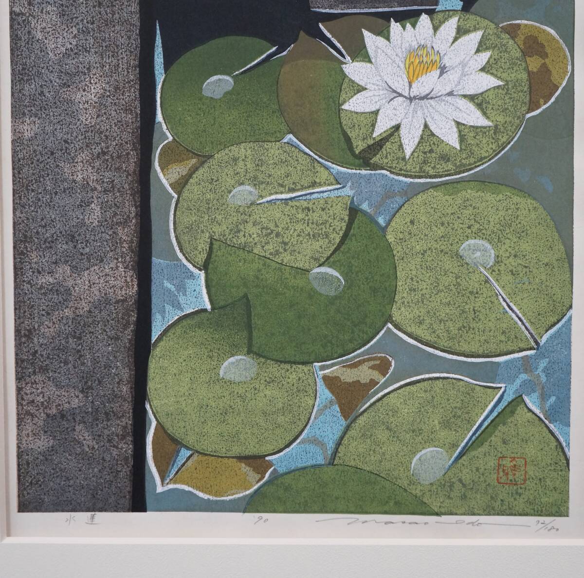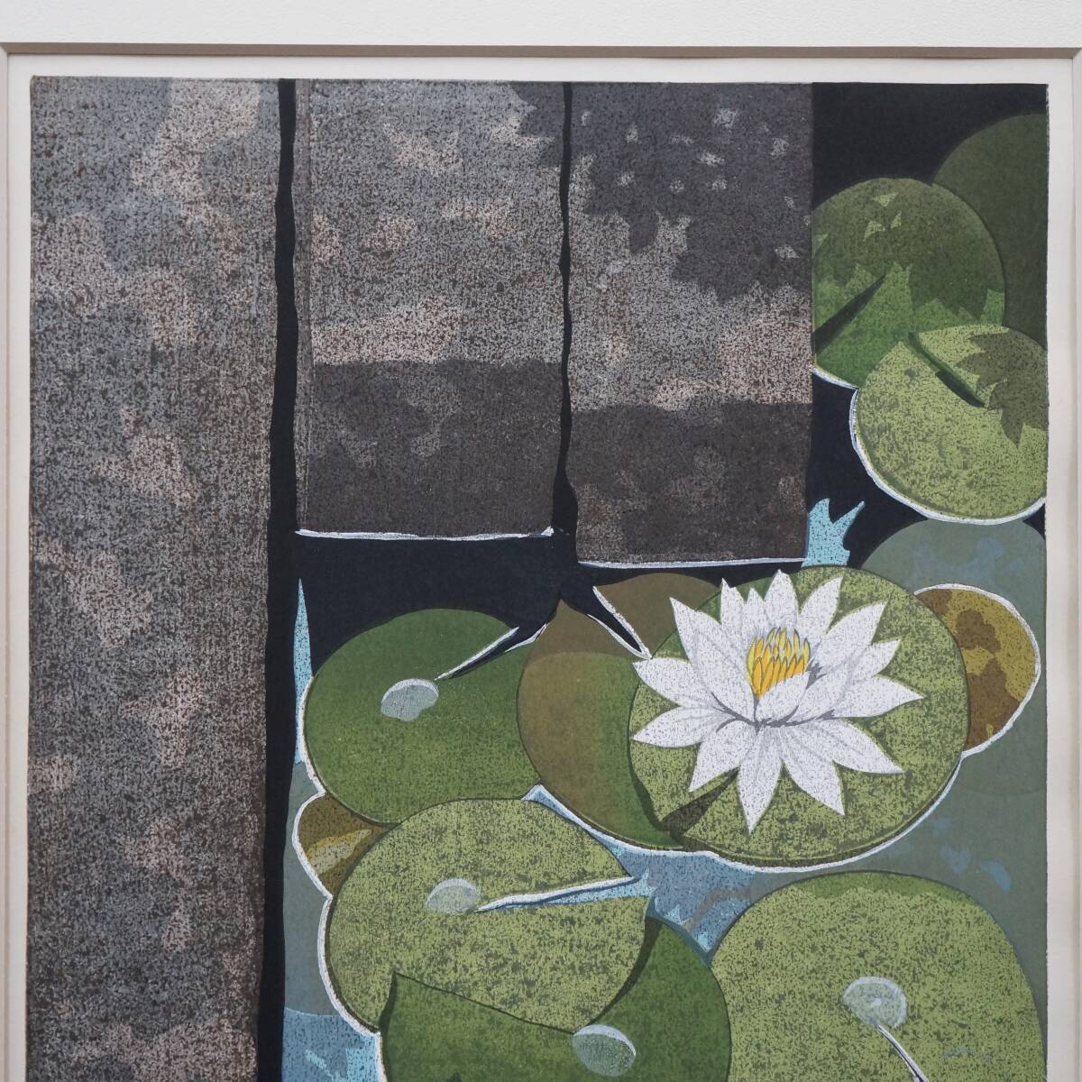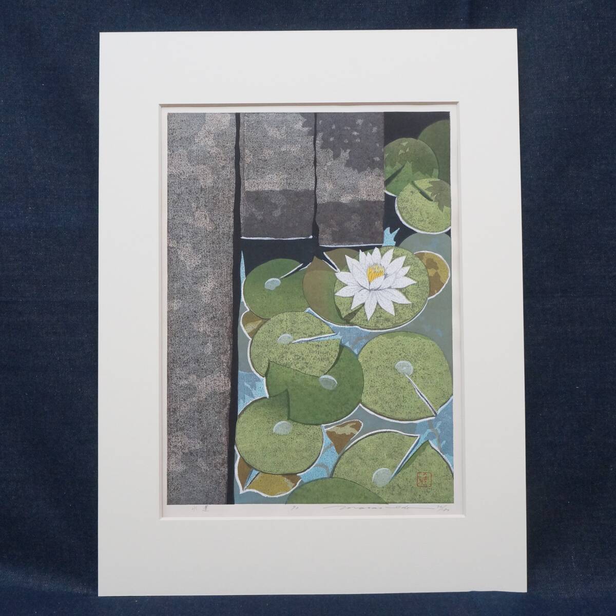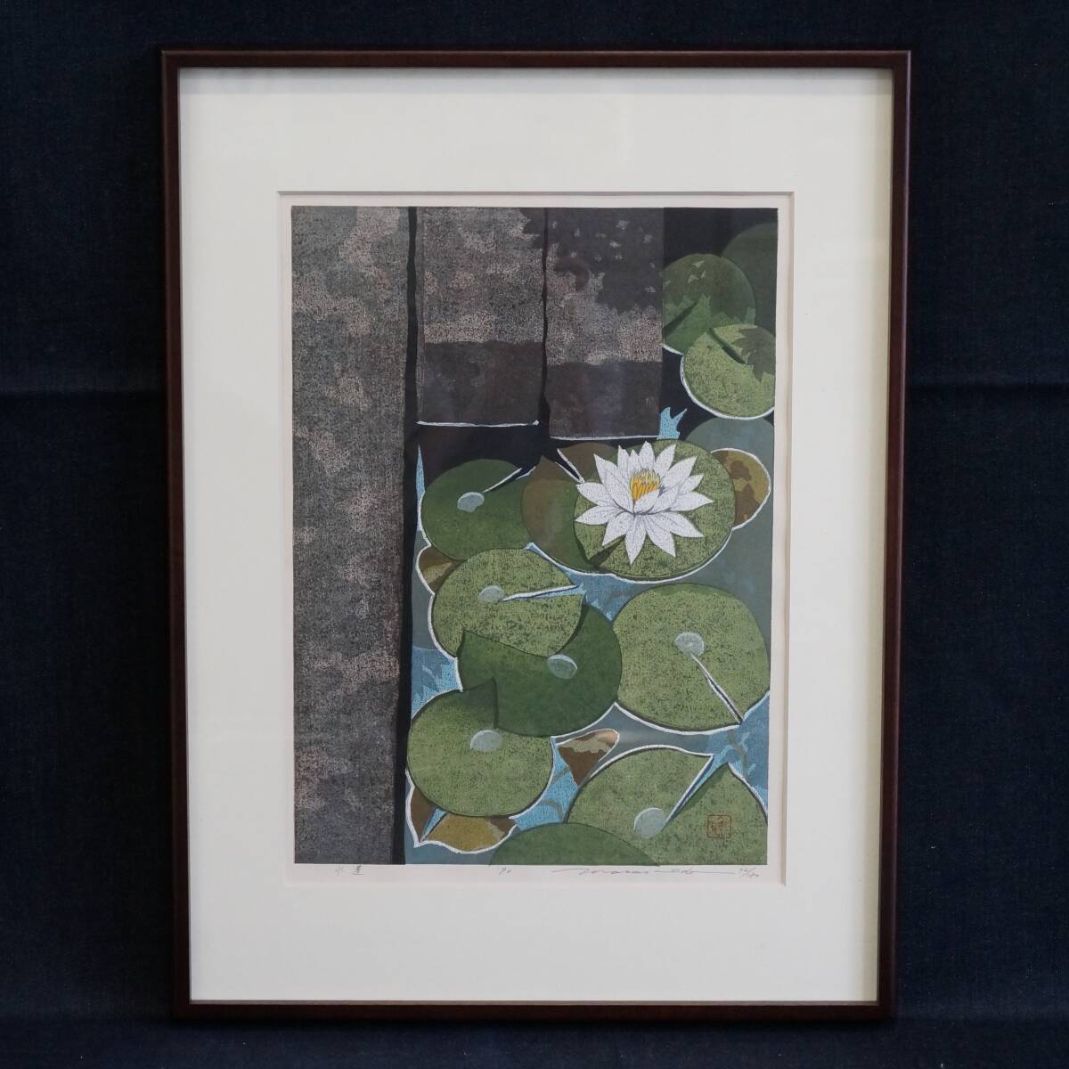 Product name: 井堂雅夫 「水蓮」 木版画 72/180 画寸W30.5xH42cm 1990年作 額装 サイン 落款 箱 人気木版画家 真作保証 うぶ出し