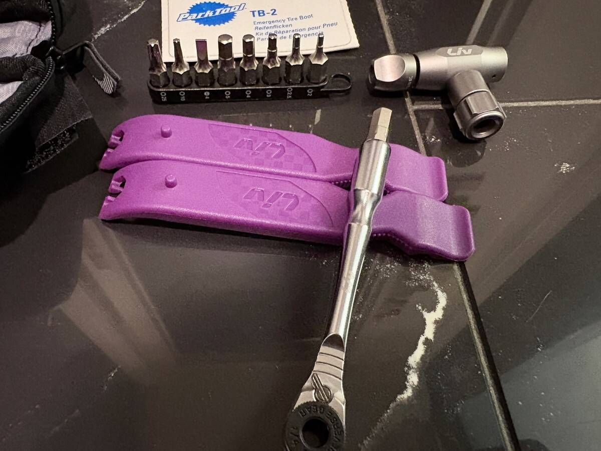 ロードバイク用工具 女性用ブランドLIV ラチェット、タイヤレバー、CO2ボンベ用バルブ、チューブ
