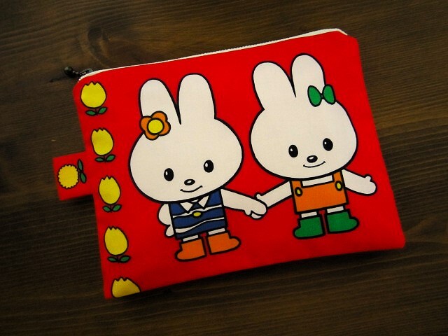 Product name: *ハ ンドメイド* 昭和レトロ 仲良しうさぎさん!(^^)!フラットポーチ ファスナーポーチ フリーポーチ 通帳ケース 小物入れ♪ 入園入学に