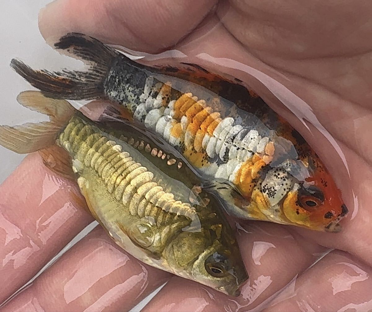 ドラゴンスケール銀鱗朱文金 当歳 約7~8cm 2匹