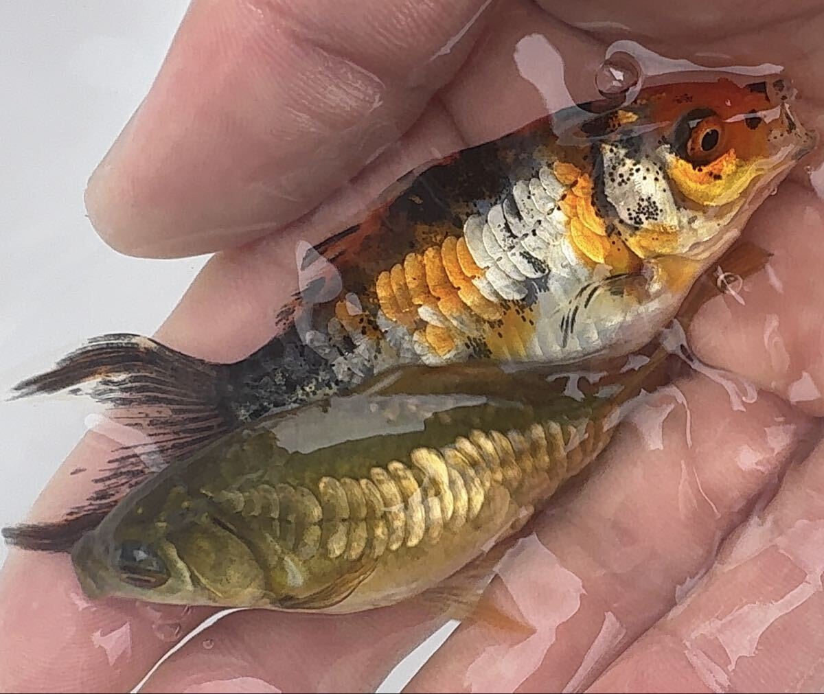 Product name: ドラゴンスケール銀鱗朱文金 当歳 約7~8cm 2匹