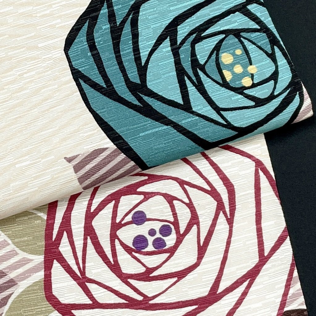 着物月花 可憐な薔薇 京袋帯 全通柄 正絹 ob7339