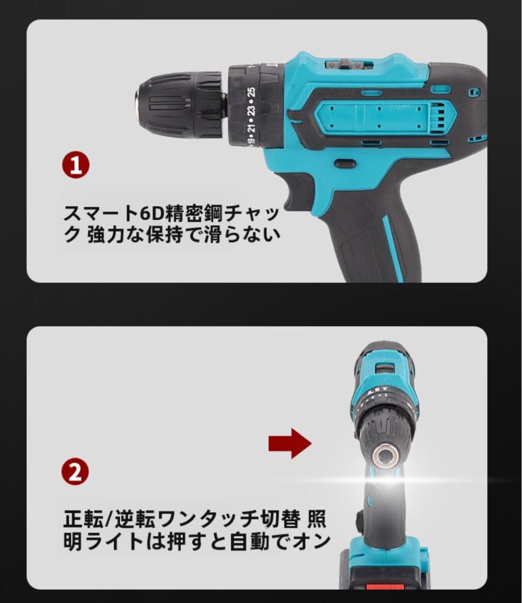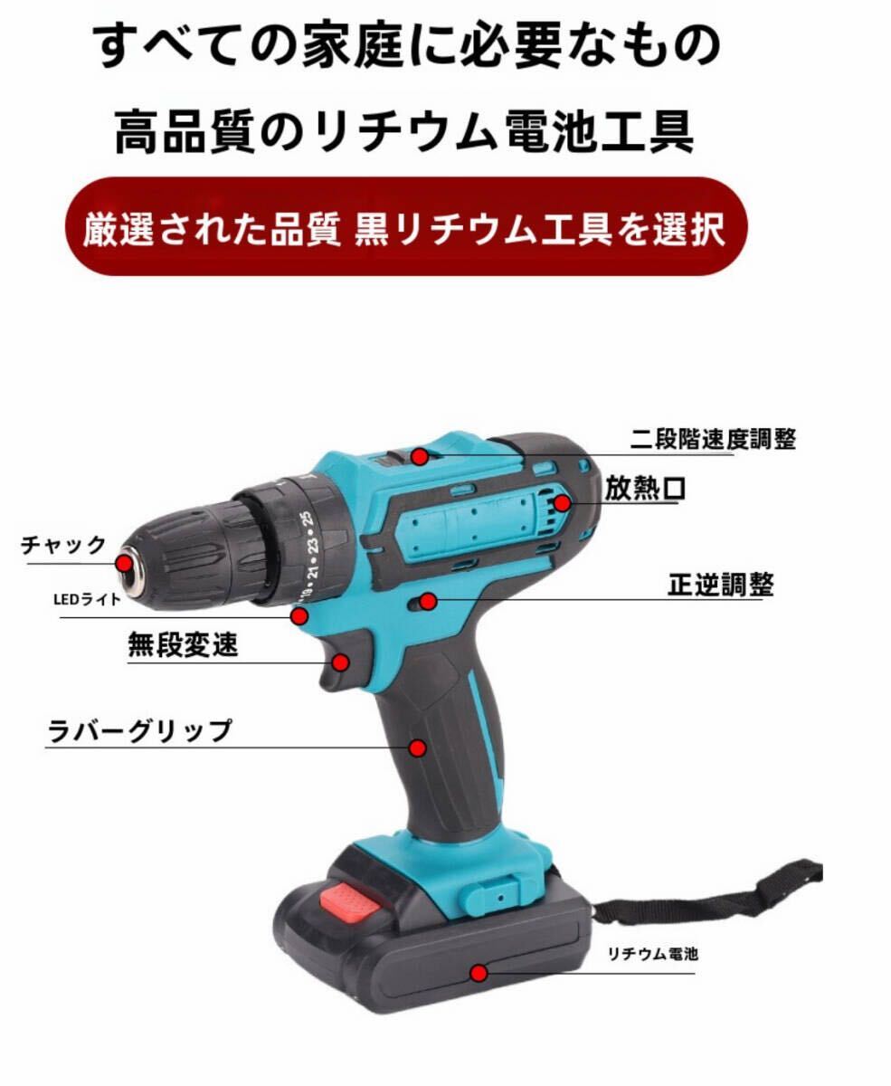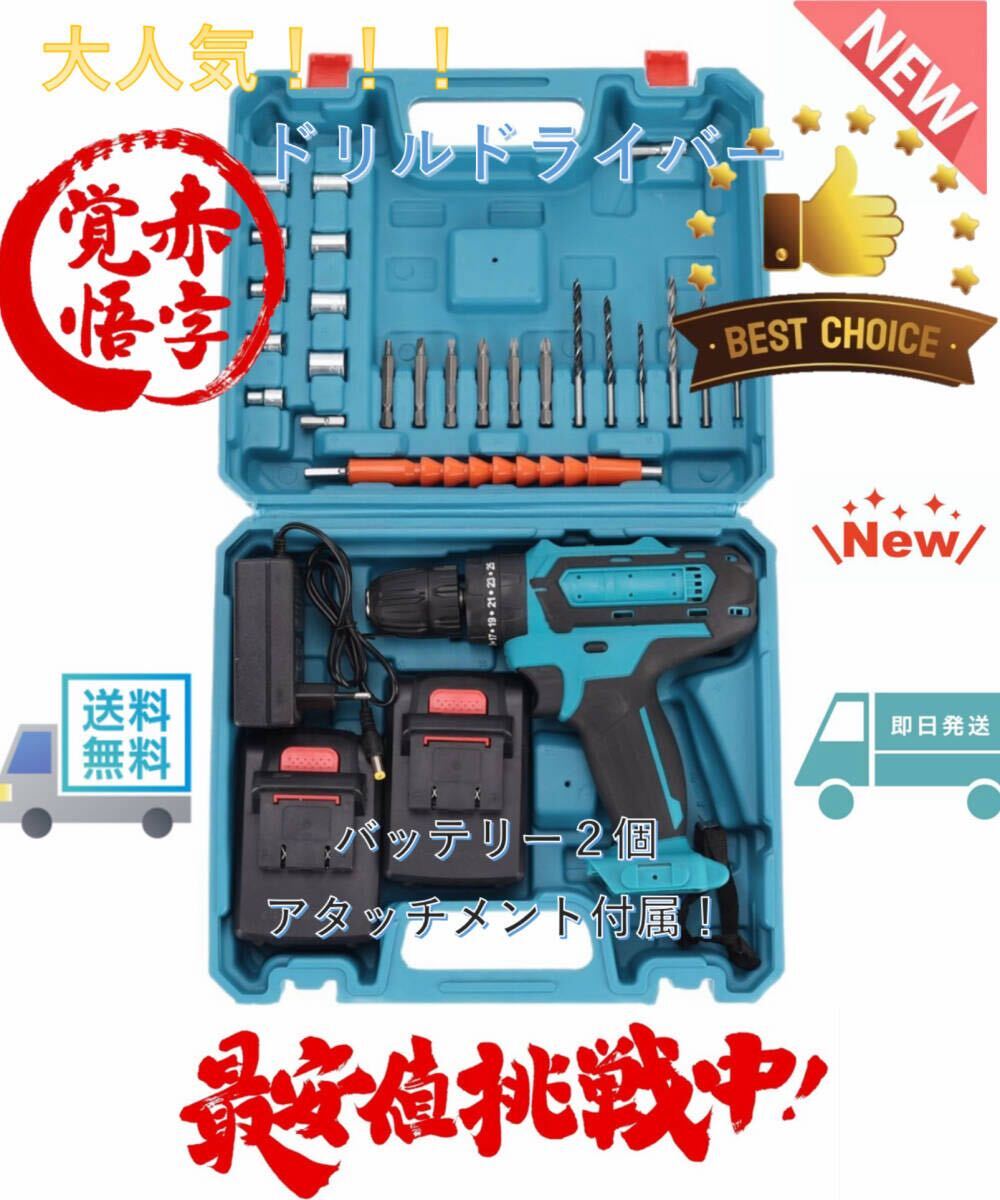 Product name: 送料無料 電動ドライバー 多機能 電動ドリルドライバー 充電式 正反転切替 長続航 バッテリー2個 充電器付 正逆切替 24点セット 新品