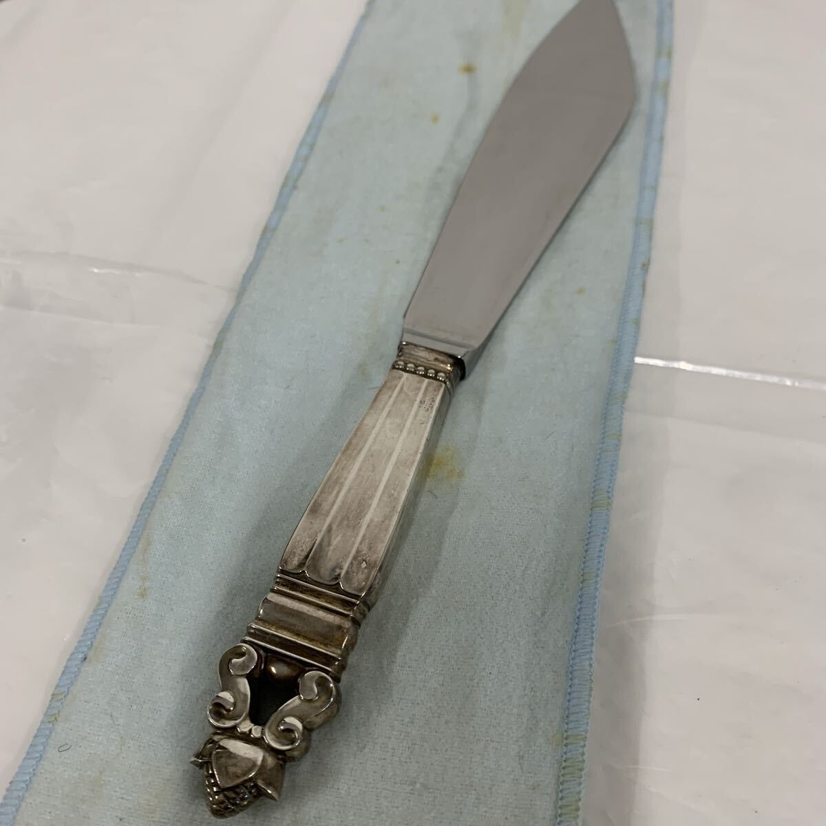 ・デンマークジョージ ジェンセン(Georg Jensen)アカンサス(Acorn)シリーズ ケーキナイフ 全長約17cm 総重量約120.6g シルバー