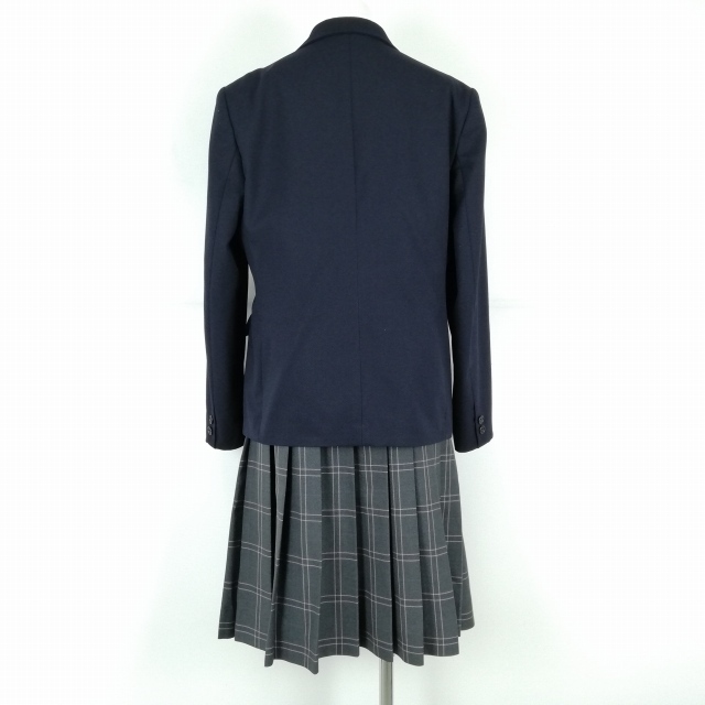 Product name: 1円 ブレザー チェックスカート リボン 上下4点セット LL 大きいサイズ トンボ 冬物 女子 学生服 京都西山高校 紺 中古 ランクB EY4074