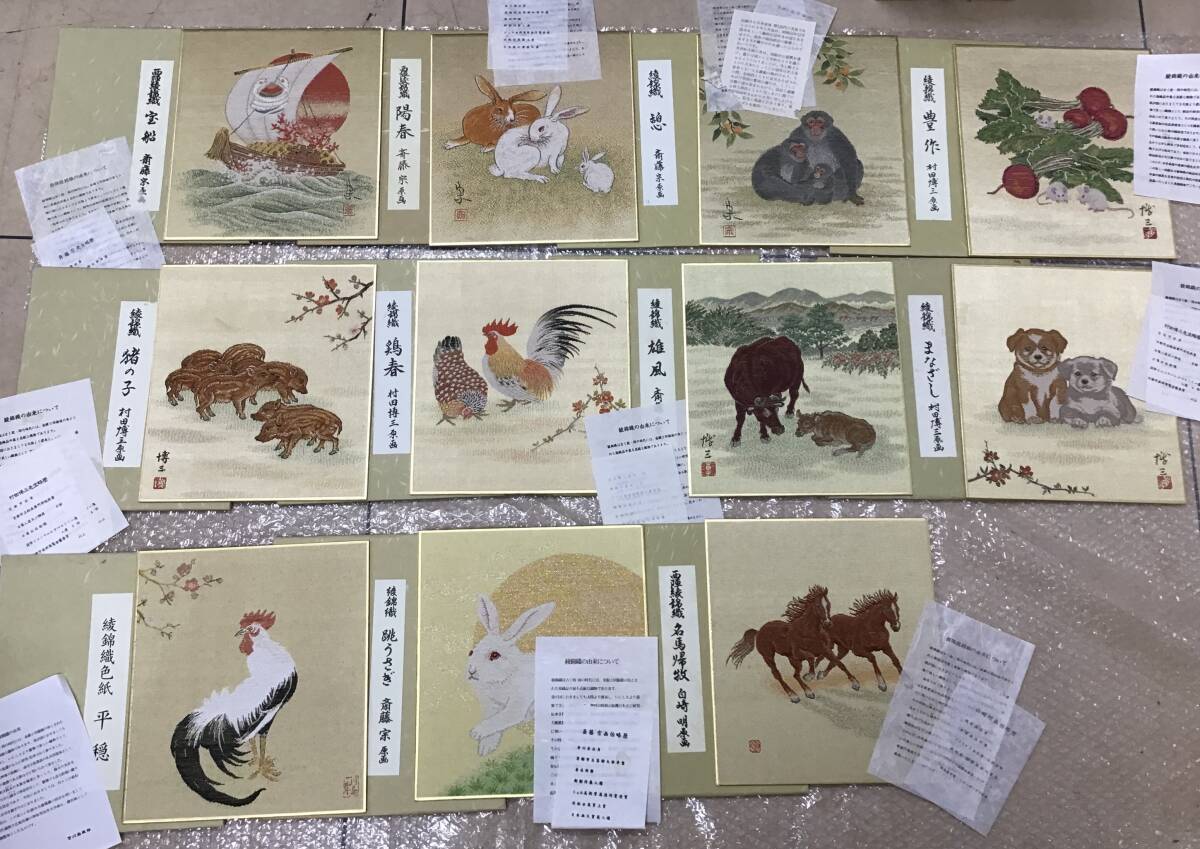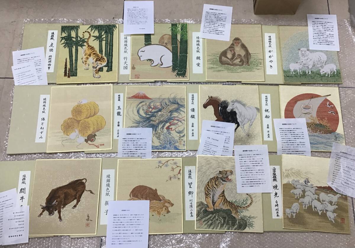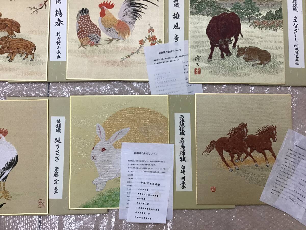 Product name: 7571■綾錦織 色紙 まとめ 23枚 工芸品 芸術 織物 日本 村田博三 斎藤宗 狩野探幽 原画 など