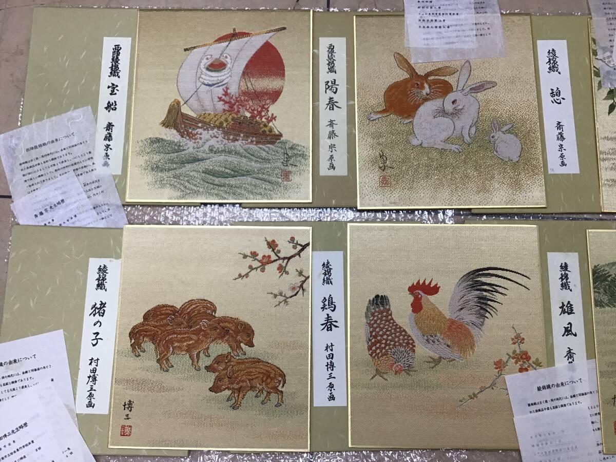 7571■綾錦織 色紙 まとめ 23枚 工芸品 芸術 織物 日本 村田博三 斎藤宗 狩野探幽 原画 など