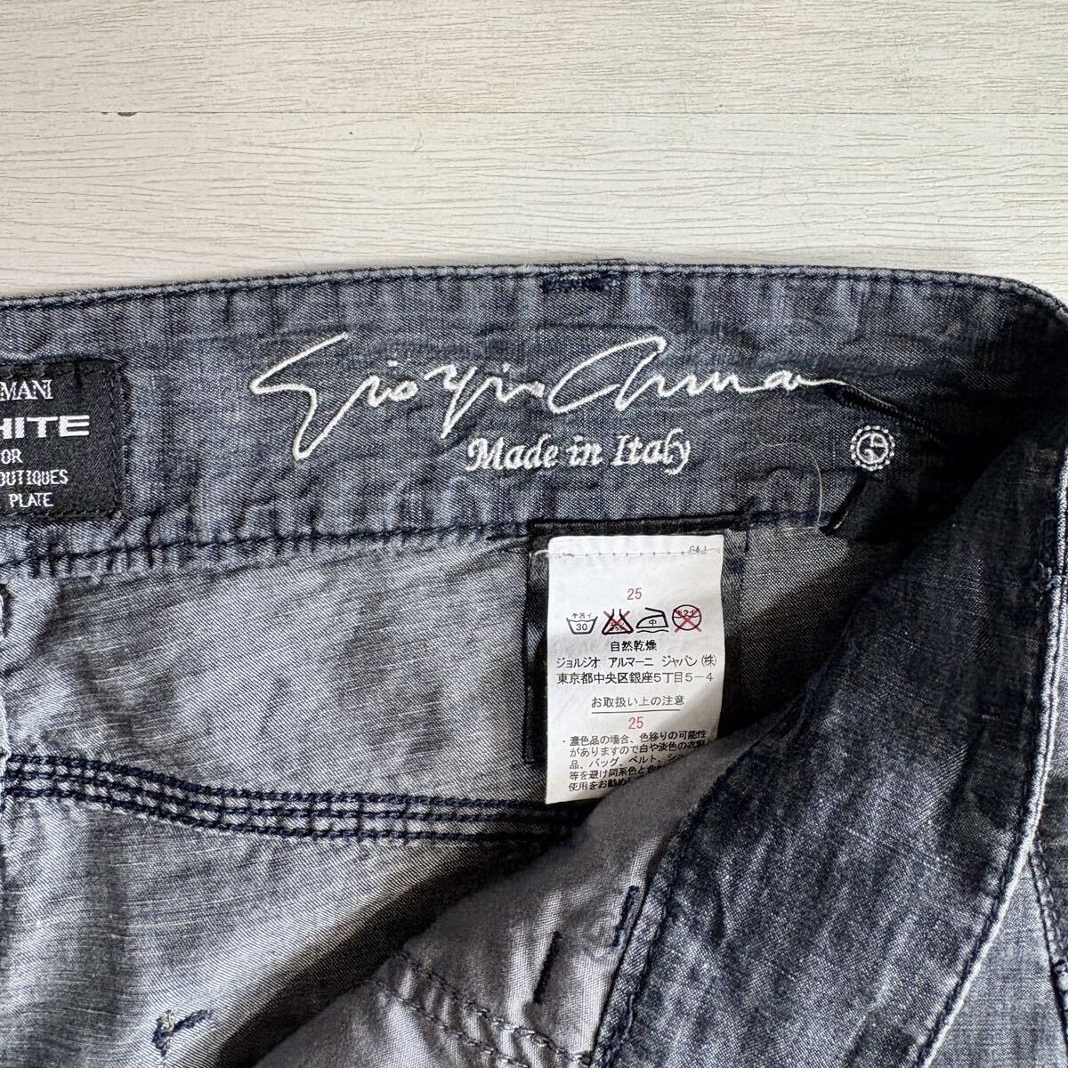 Product name: 【人気】Giorgio Armani ジョルジオ・アルマーニビッグホワイト ブルー ハイライズ ワイドレッグシャンブレー リネン トラウザー 25