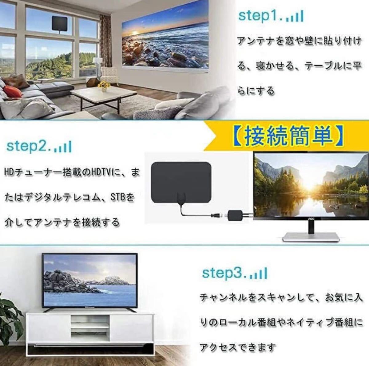室内アンテナ 「2023最強受信範囲」 4K HD TV アンテナ 地デジ テレビ アンテナ 信号ブースター内蔵 430KM 受信範囲 360度全方位受信 高性能 高感度 UHF VHF対応 USB式 薄型&小型軽量設計 設置簡単 全種類テレビ対応 英語取扱説明書(ブラック)