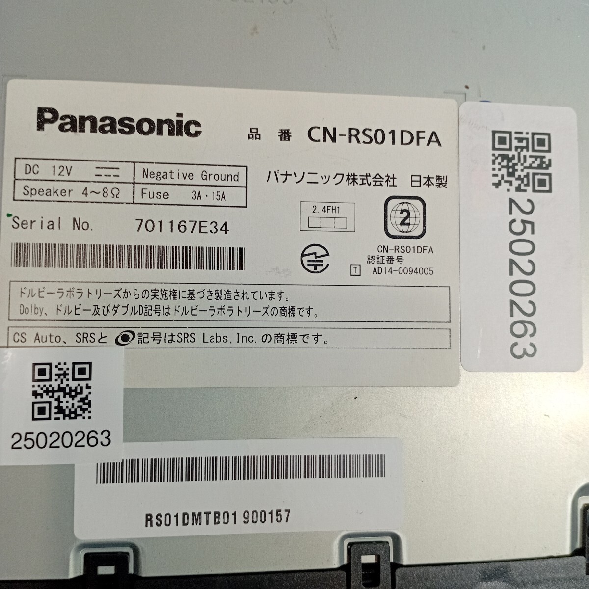 本体シリアルNo [ CNRS01DFA 701167 ]
