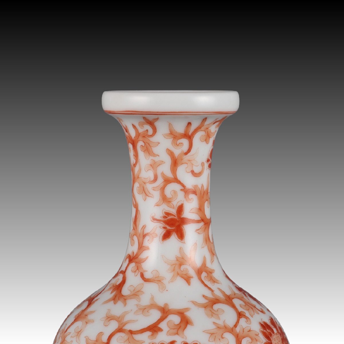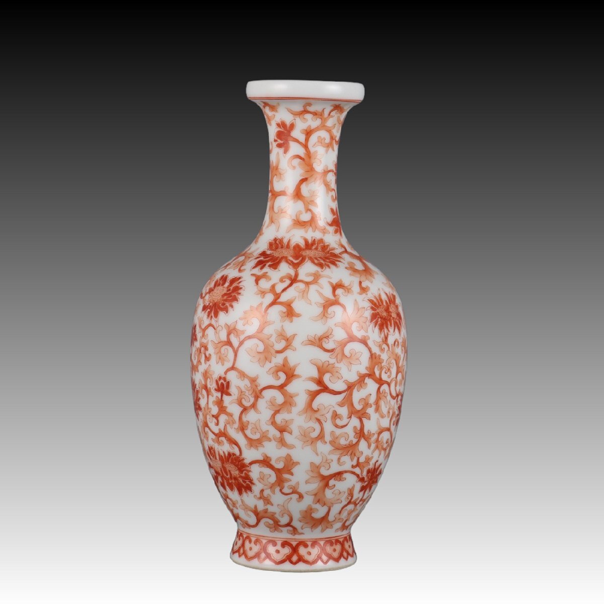 Product name: 【安】清時代 大清雍正年製 礬紅彩纏枝蓮紋賞瓶 共箱 唐瓷 古陶瓷 中国古美術 古董品 274