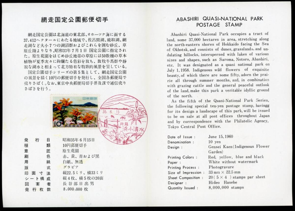 Product name: k17 初日印 網走国定公園 北見・浜小清水/35.6.15 解説書