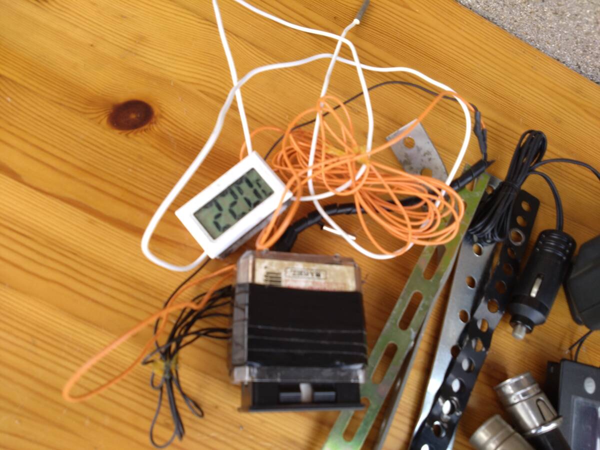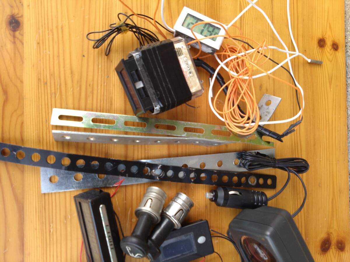 ユピテルカーナビは正常に稼働します。照明機能付き傾斜計。オフロード、ラフロードの必需品。COOL PAZIO、多機能時計は車内温度計付きですが車外センサーはカットしてあり現状測定不可。電圧計。温度計。その他。
