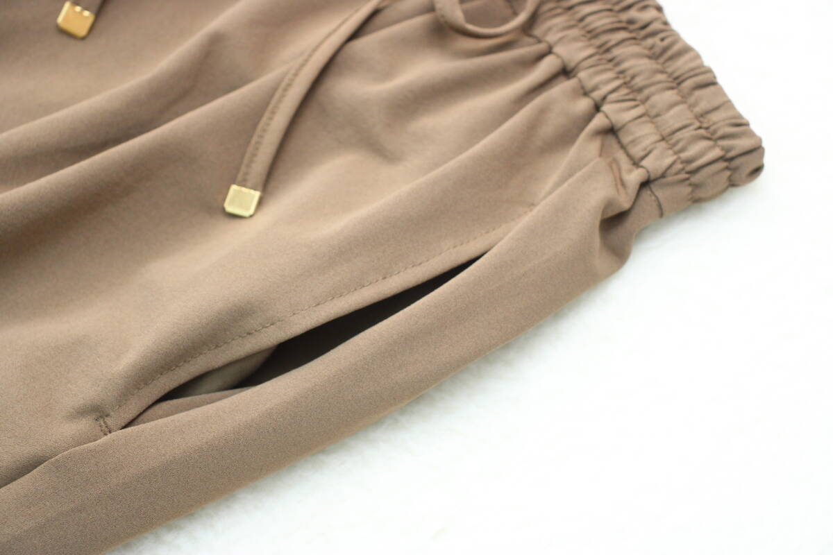 4968 新品 ウエストゴムストレッチイージーパンツ モカブラウンFサイズ 定価¥7,200+税