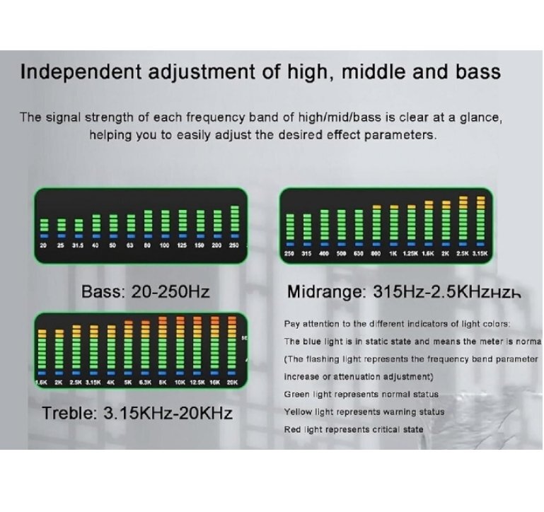 Product name: 31バンドステレオグラフィックEQ、10個のプリセットエフェクトと低/中/高音の独立した調整を備えたプロフェッショナルな2チャンネルグラフ