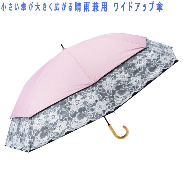 送料300円(税込)■lc357■小さい傘が大きく広がる! 晴雨兼用 ワイドアップ傘 ピンク 6800円相当【シンオク】