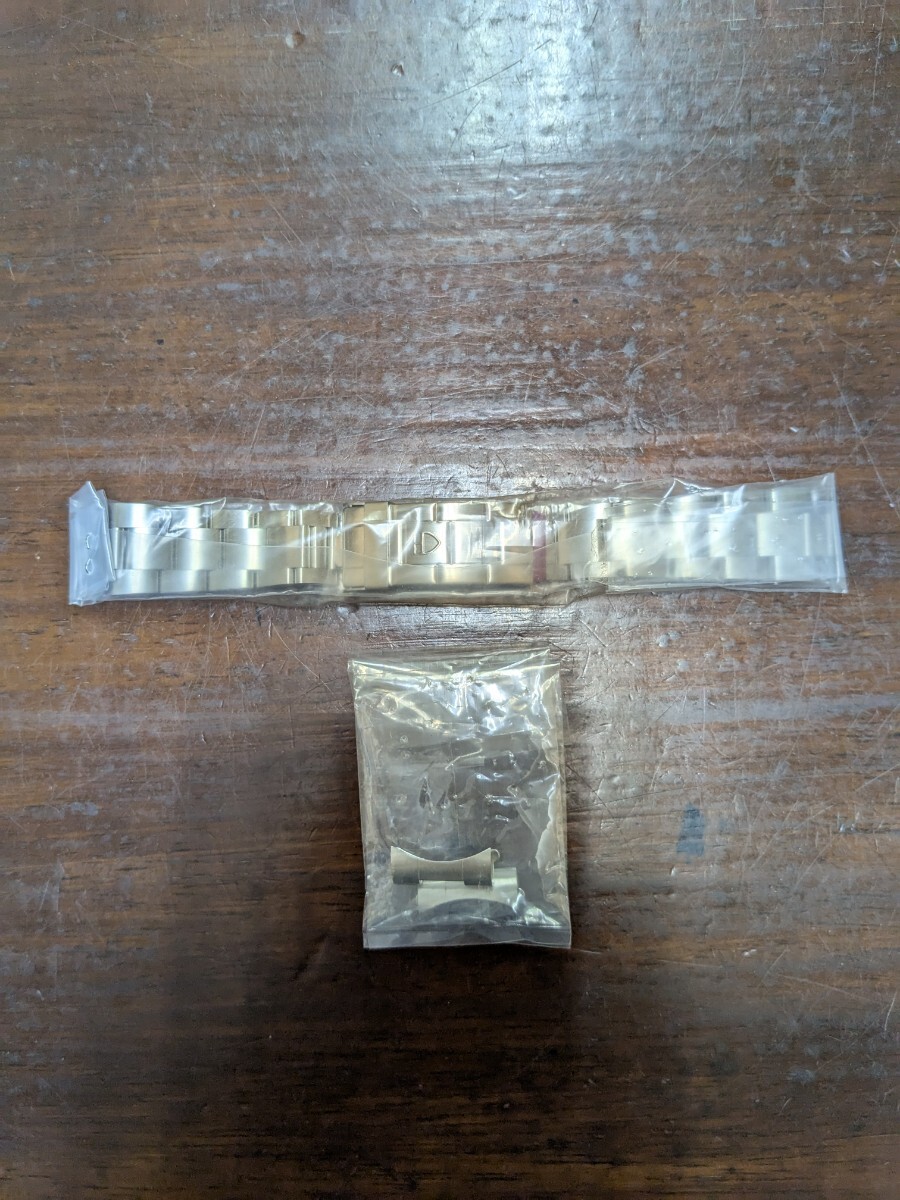 ご覧下さりありがとうございます。「TUDOR」の「オイスターハードブレス 78500」です。サブマリーナ79090から1995年に代替わりしました、79190の1997年モデルから付属しましたオイスターブレスです。私見ながらそれまでの巻きブレスと異なりハードブレスと呼ばれ、ネジでのコマ脱着が可能になり手首周りの調整が比較的安易になりました。このお品は以前に所持しておりました79190を3~4年前にロレックスにてメンテナンス依頼をしました際、付属のハードブレスのバックルのある程度の傷みから交換と成りましたが、メンテナンス完了時の季節柄、ナイロンバンドに変えておりましたので未着用のまま保管しておりました。ちなみにフラッシュフィットが同タイプの79090にも使えますし、ブレス部分だけでしたら75090、75190にも対応しております。基本新品ですから特に問題無いとは思われますが保管上での多少の経年劣化や埃汚れ等を考慮の上、NC・NRにてお願い致します。購入時の時点でスイス本国からの取り寄せでしたので、現状で流通は皆無に等しいと思いますし、ハードブレス付属79190は1997~1999年の僅か2年で生産終了ですから尚更です。また、TUDORに限りませんが、フラッシュフィット付きは貴重でUSEDでしたらバンド本体のみの出品も珍しく有りません。最近の様々な物資の高騰を考えますと、現状で値上がりの可能性が大ですが、敢えて購入時の定価位で出品させて頂きますので、このチャンスをお見逃しなく!