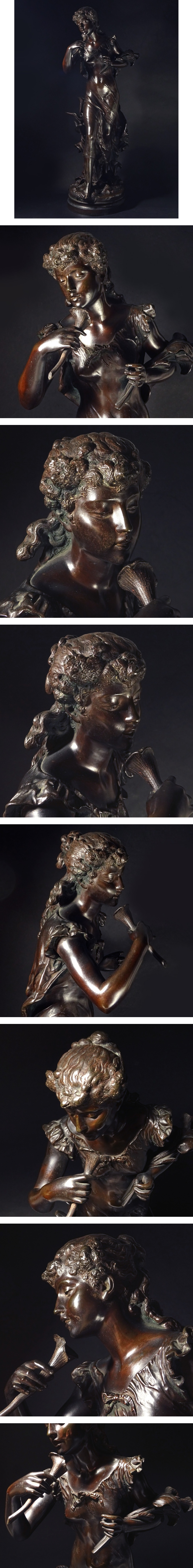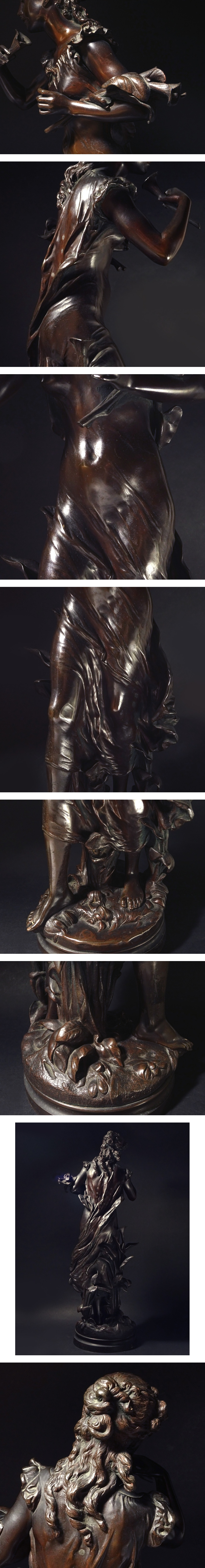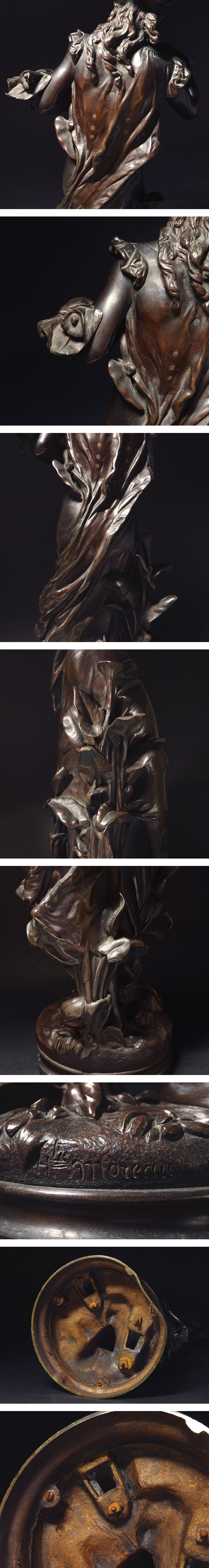 本物保証!       フランス・ディジョンで高名な彫刻家「Jean-Baptiste Moreau ジャン=バティスト・モロー」の息子、女性をモチーフとしたブロンズ像で有名なフランスの彫刻家で、1878年と1900年のパリ万国博覧会でメダルを獲得するなど活躍した【Hippolyte Francois Moreau イポリット・フランソワ・モロー】(1832-1927)作。
