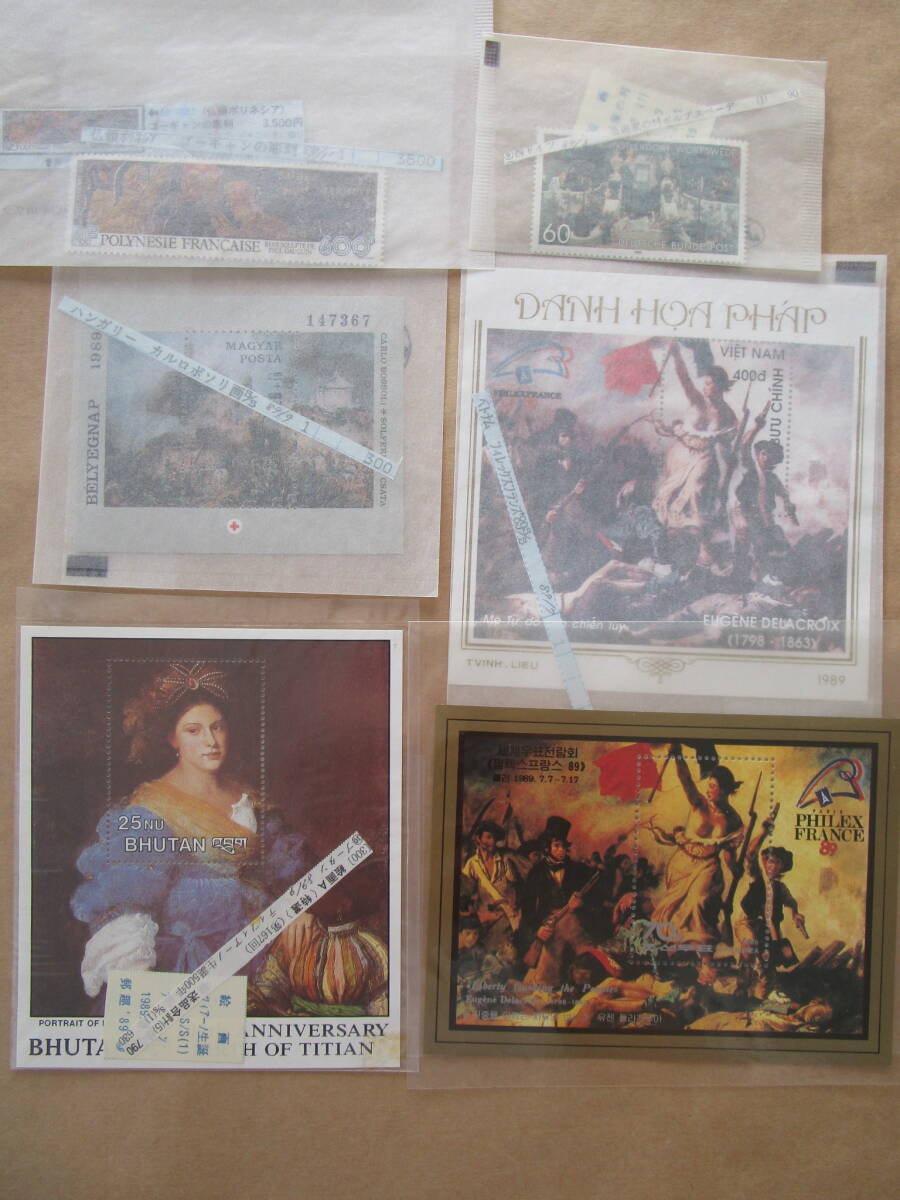 ★外国切手 絵画など美術 未使用約130枚 小型17シート★