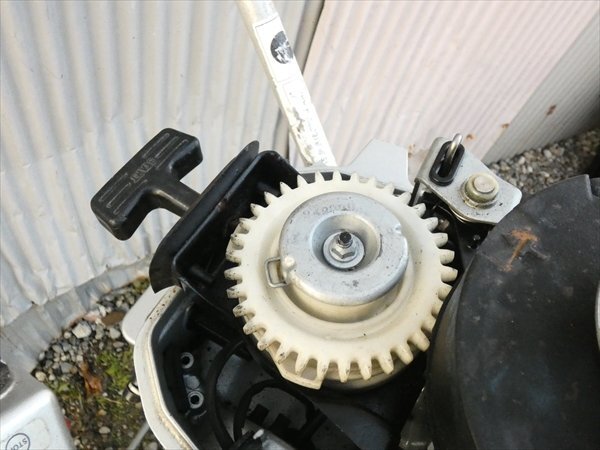 リコイルを引いてみましたがかなり重く、エンジンがかかりませんでした。