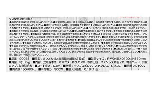 内 容 ■おひとり様お弁当箱炊飯器 2段式 90058