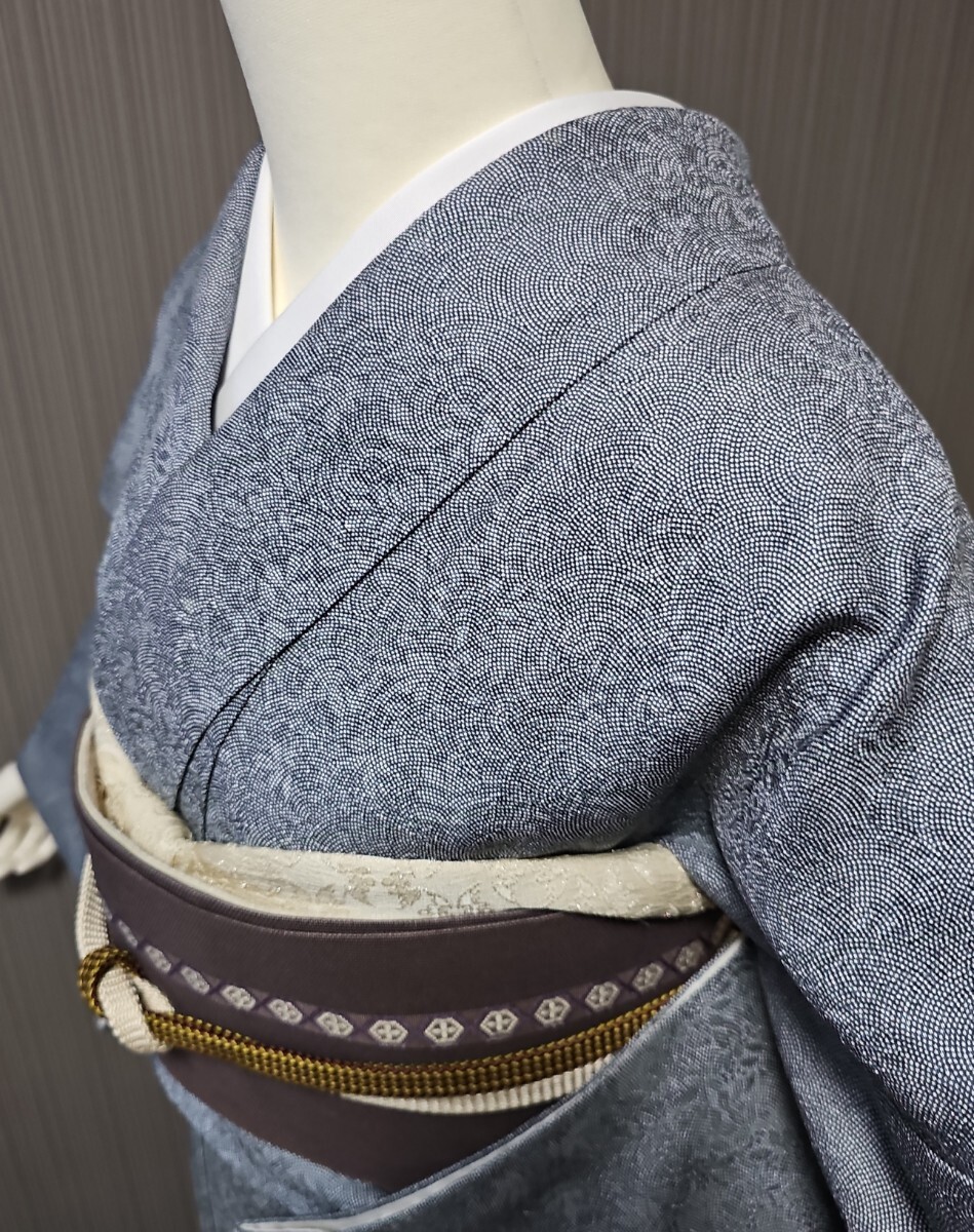 Product name: すずや■239 正絹型染め江戸小紋鮫柄 裄丈69cm  着丈166cm  青灰系