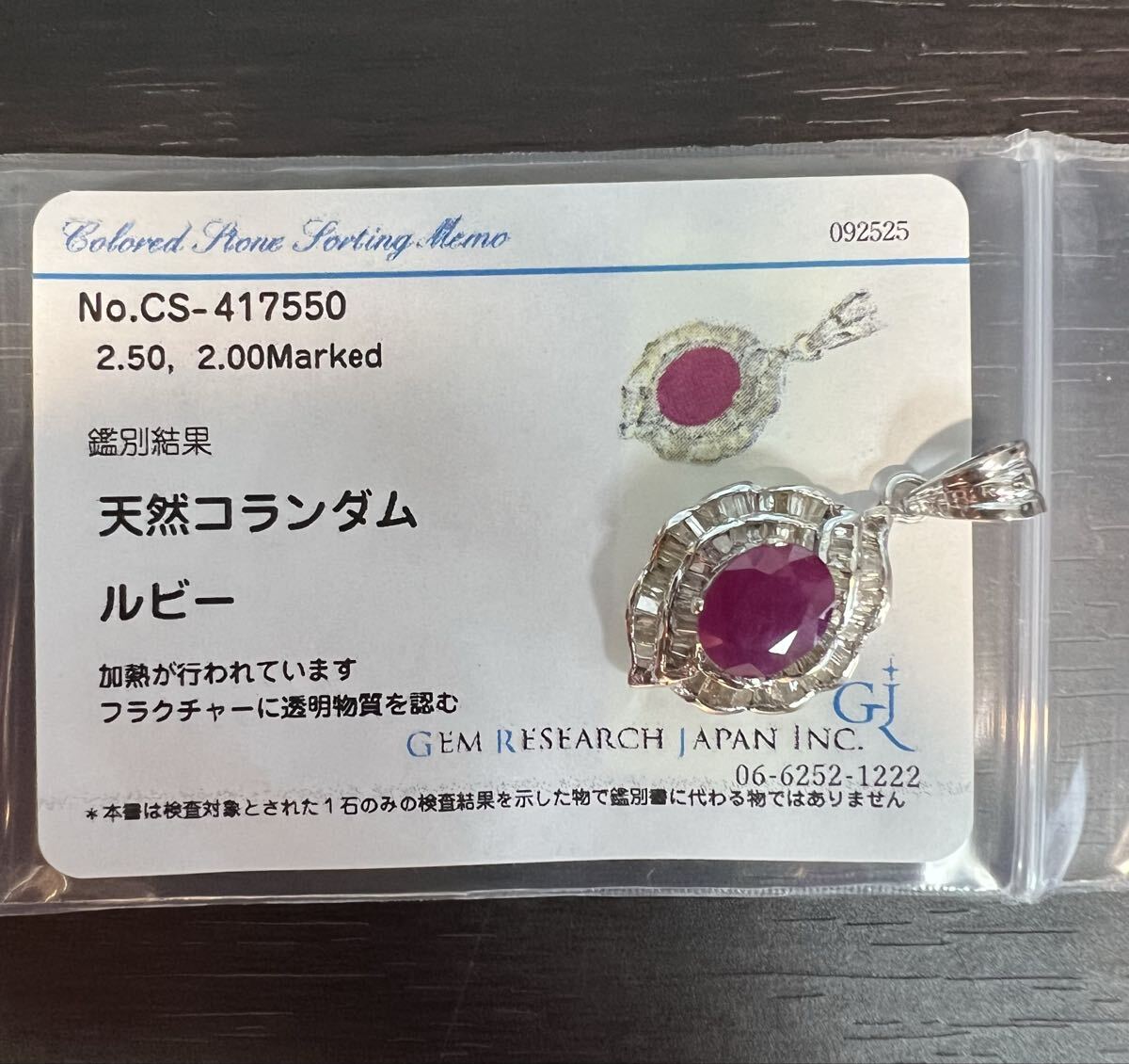 Product name: 1円 K18 ペンダント トップ ルビー 2.5ct ダイヤモンド 2ct 3.82g EG2031