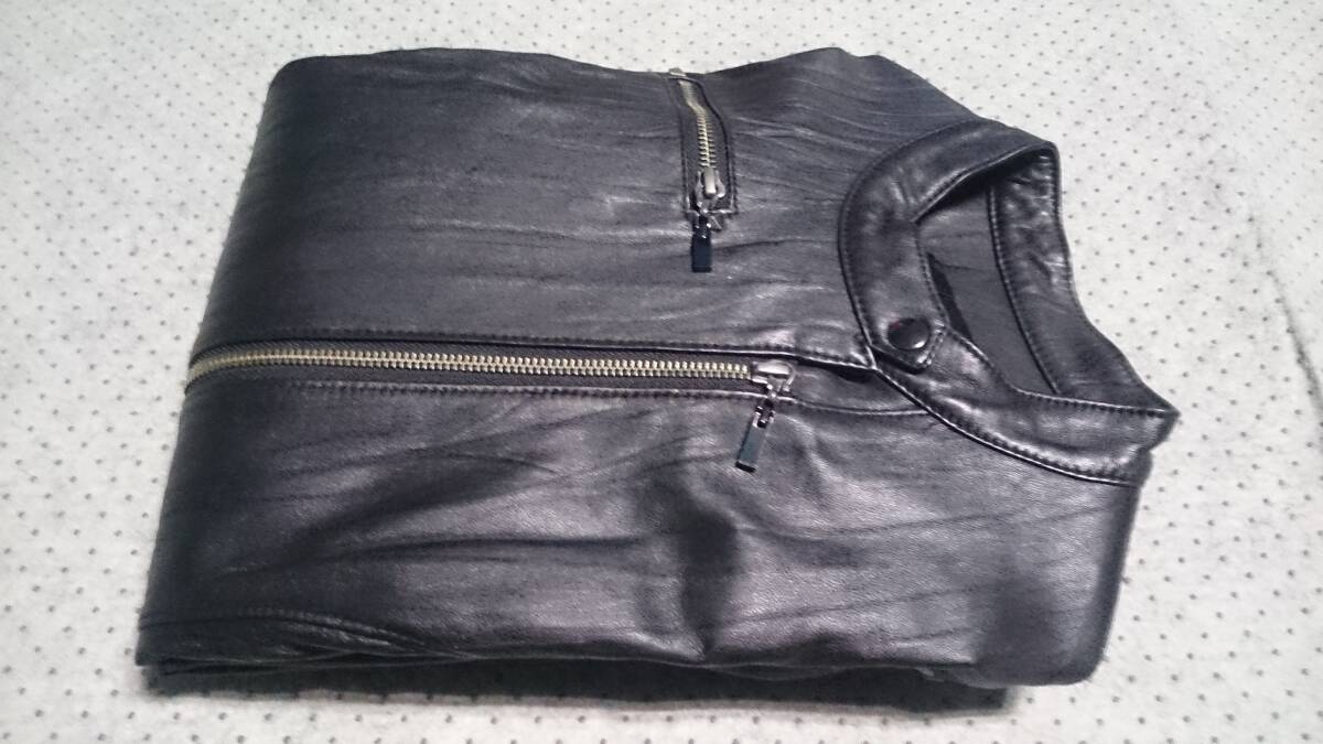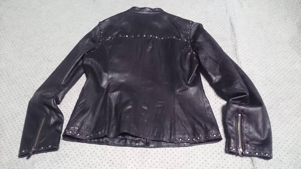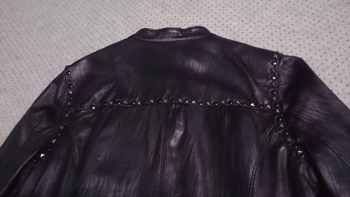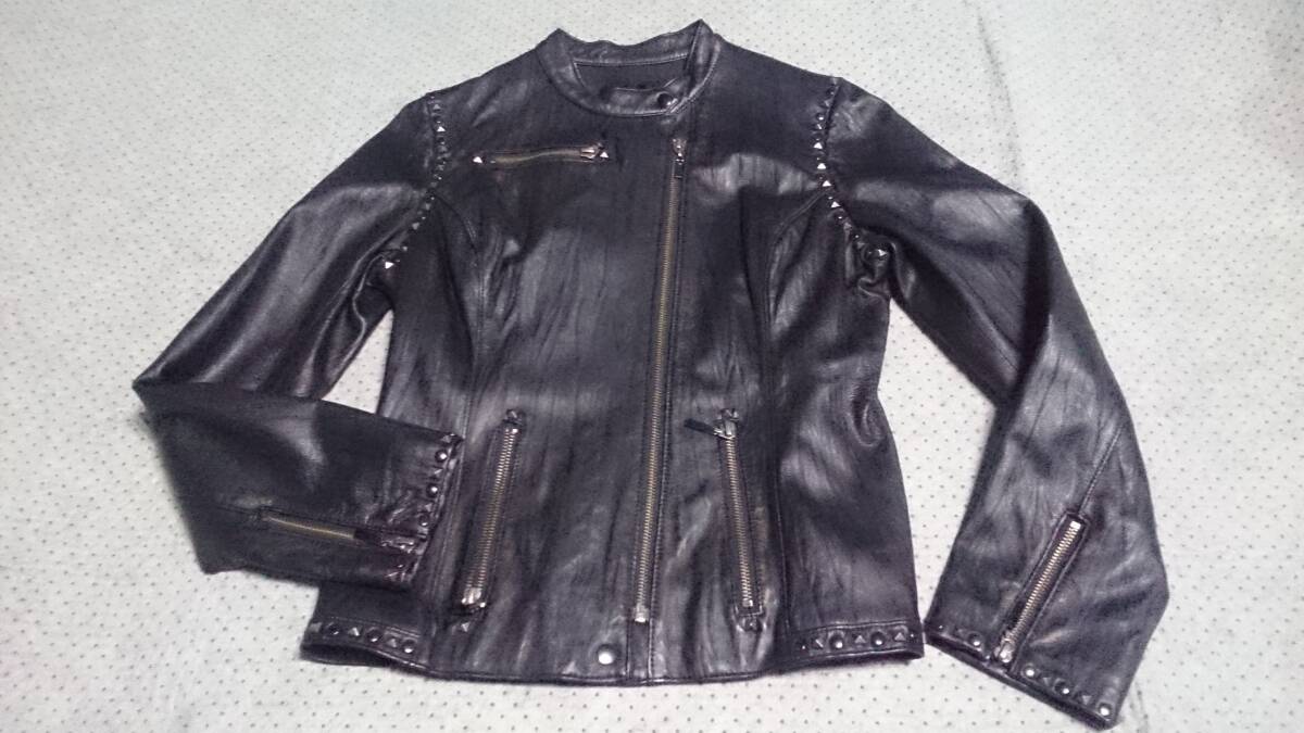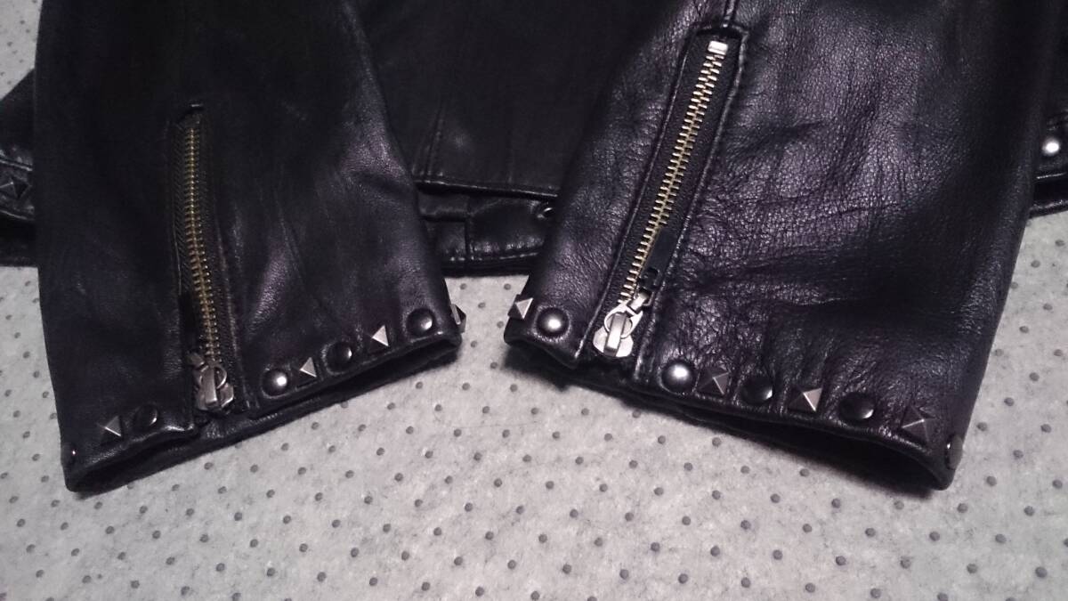 中古/美品 CARA フジコウ 本革 羊革 ラムレザー スタッズ デザイン ジップ ライダース ジャケット 黒 M/154-162