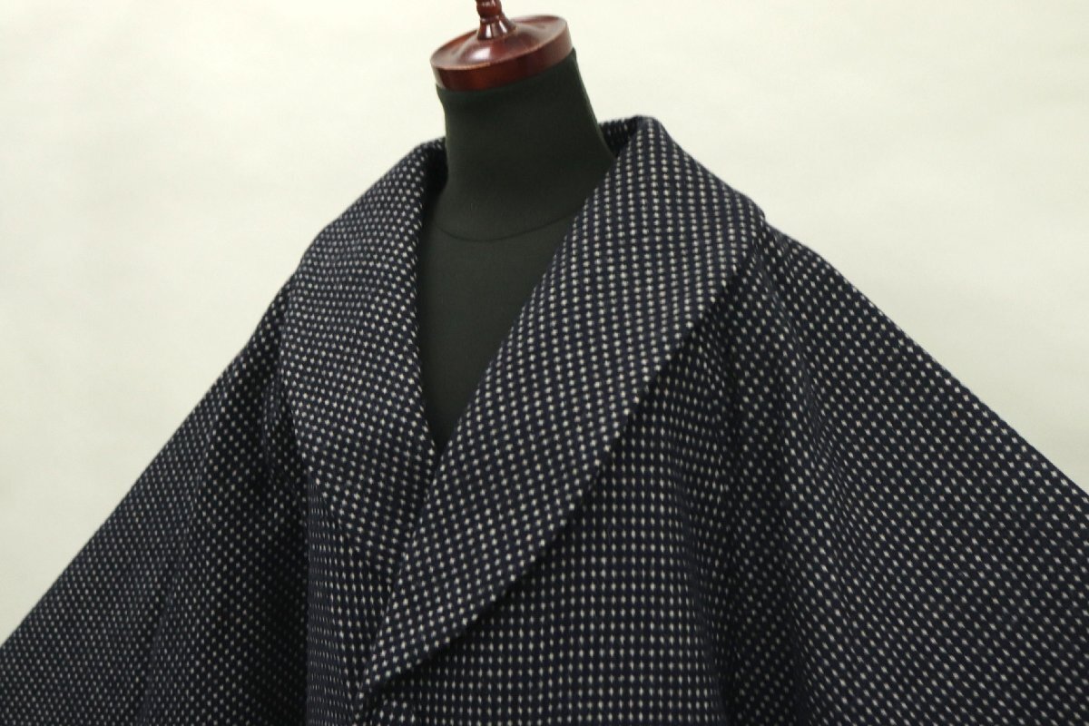 Product name: 和遊館 KOK199 日本製 ウールコート へちま衿 和装用 ロングコート 黒紺色