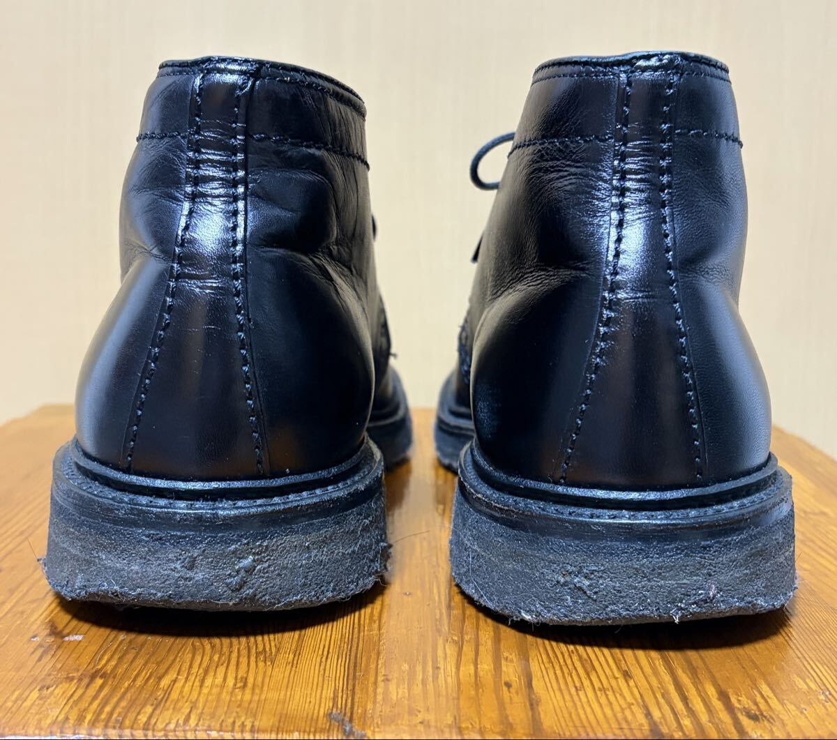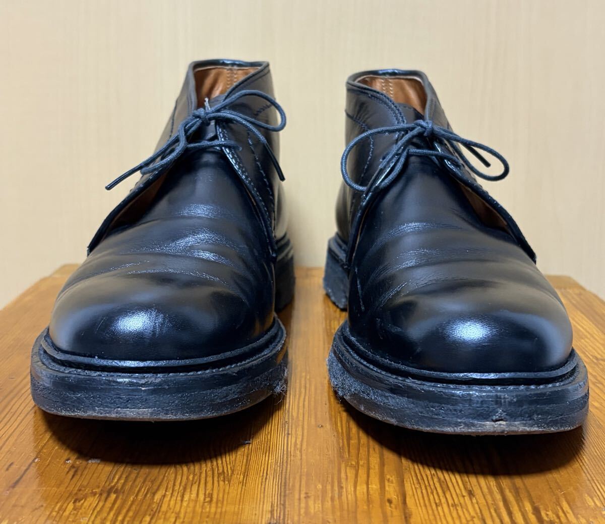 使用状況 :10年程前に購入し着用しておりましたユーズド品となります。ソールに減り、溶けた箇所あり、使用による履き皺や擦れ箇所あります 私的にはまだまだ履いていただける状態だと思います。替えのシューレースとシューホーンが付属します。お好きな方いかがでしょうか。