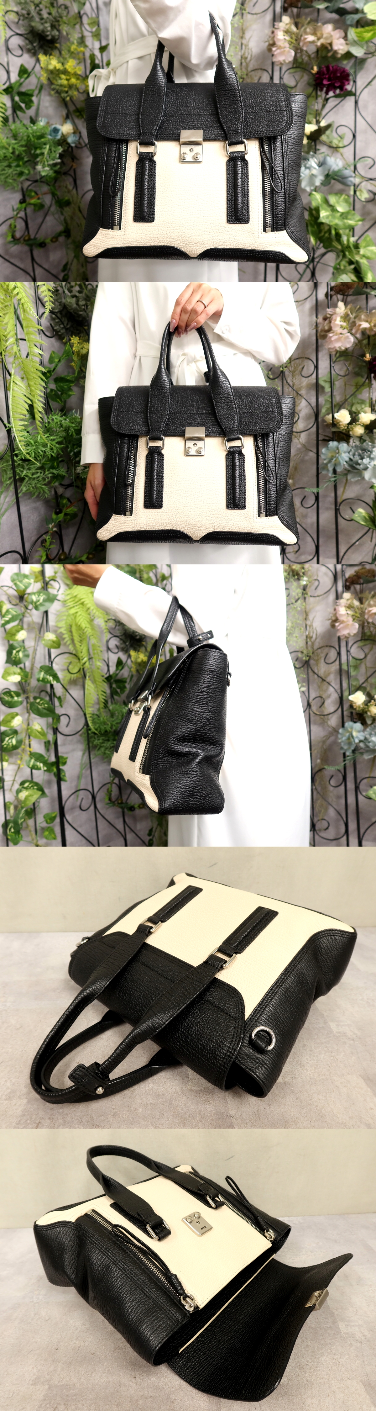 Product name: ●超美品●3.1 Phillip Lim フィリップリム●パシュリ●カーフ レザー 本革●ハンド バッグ●アイボリー 黒●SV金具●腕掛け●A4●Js61560