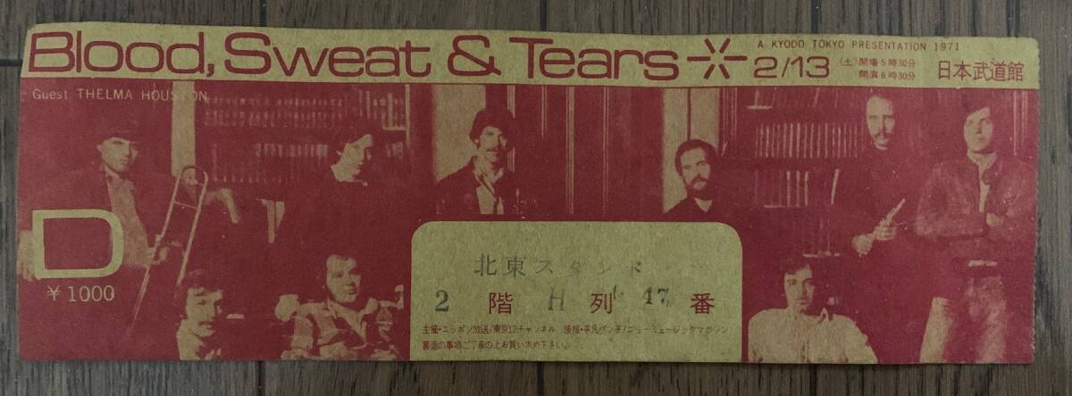 ブラッド、スエット、ティアーズ 1971 日本武道館 半券 ((送料込み))