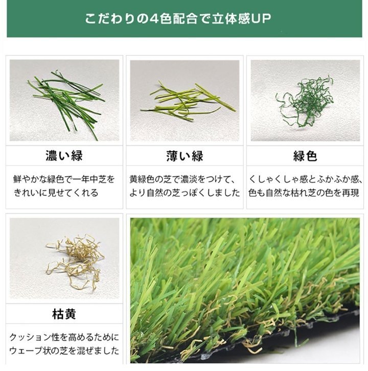 Product name: 【国内発送】人工芝 ロール 2m×10m 芝丈35mm ピン42本つき 4色立体感 透水穴つき リアル ふかふか 高品質 高密度