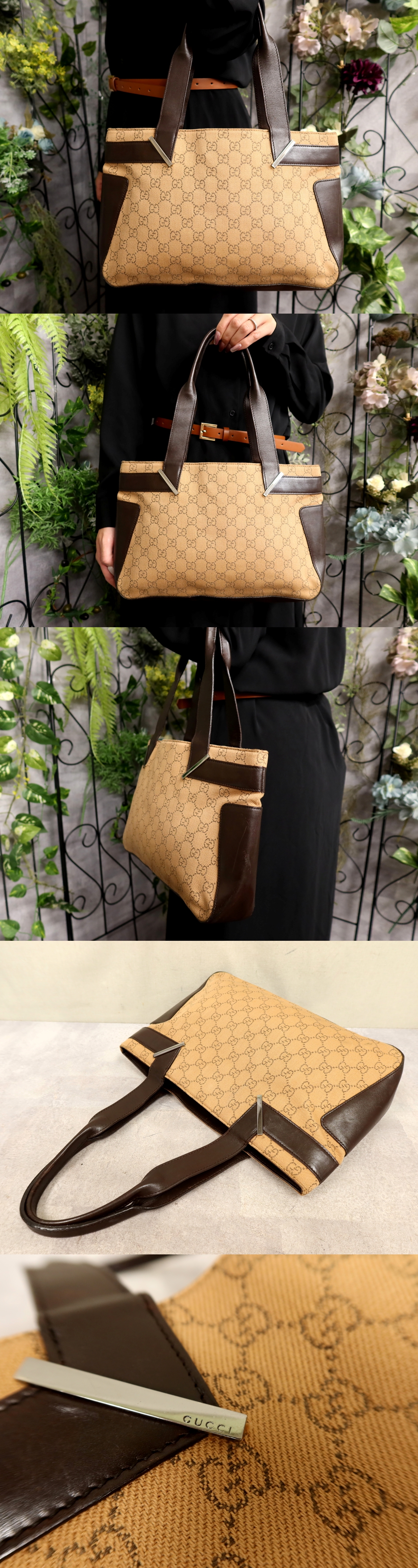 Product name: ●超美品●GUCCI グッチ●GGデニム カーフ レザー 本革●トート バッグ●ブラウン ベージュ●シルバー金具●イタリア製●B5 収納●Js61616