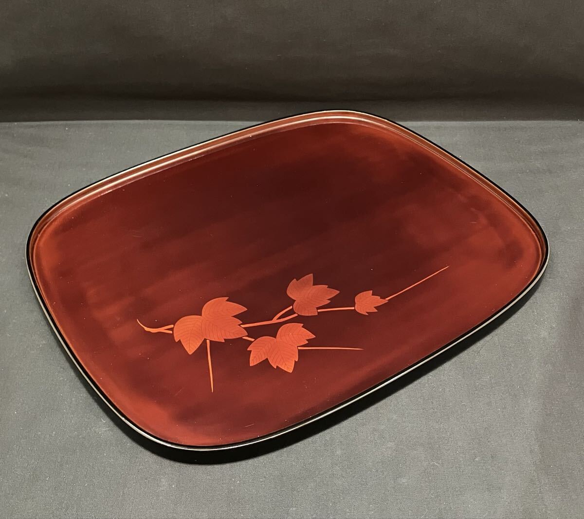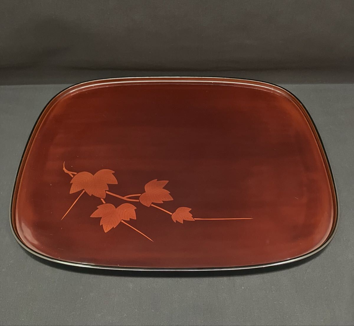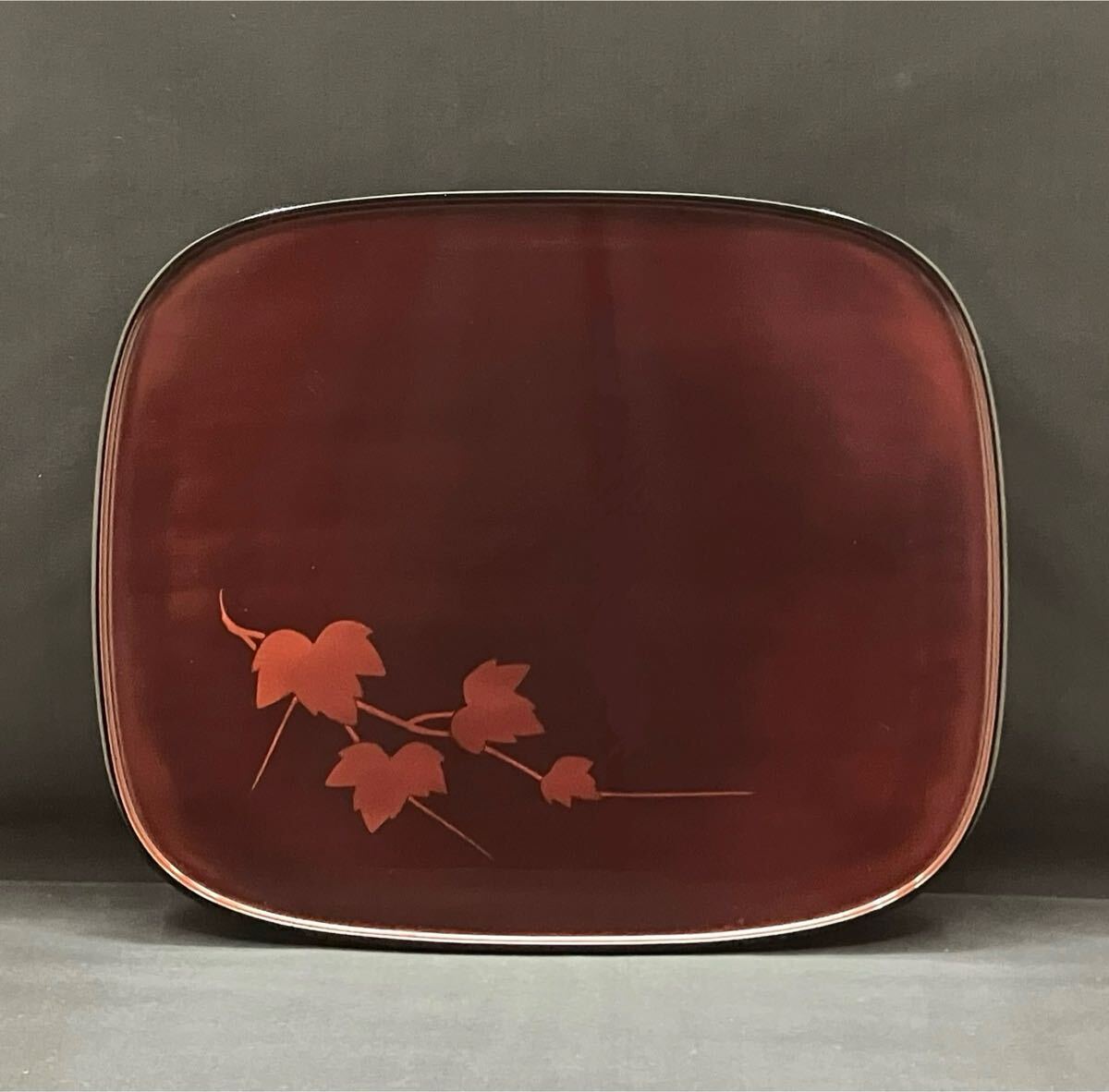 Product name: 茶懐石 輪島塗 紅漆塗り 葡萄葉図 卓上膳 5枚 共箱 茶道具 懐石盆 会席盆 茶懐石盆