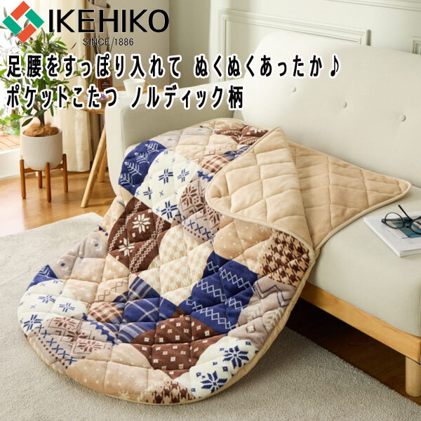 送料300円(税込)■pf014■イケヒコ ポケットこたつ ノルディック柄 ネイビー(柊)【シンオク】
