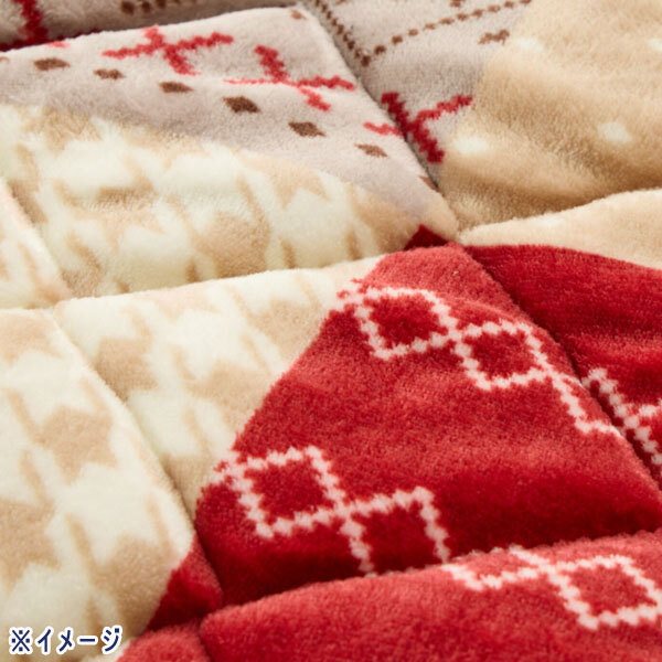 パッチワーク風にプリントしたデザインは、冬らしい雰囲気を演出。