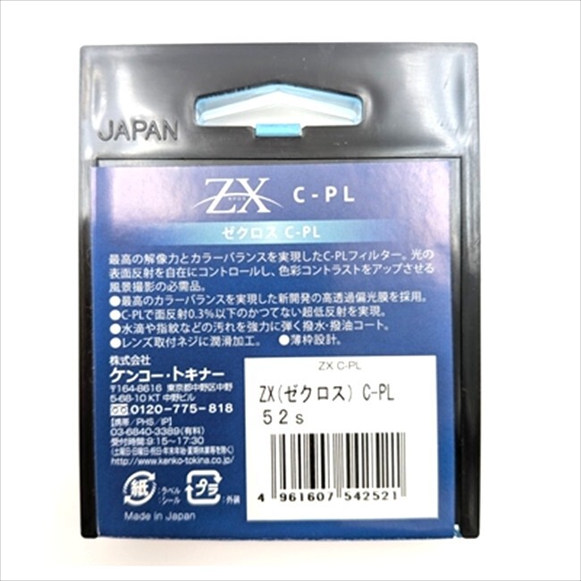 Product name: 【美品】【1円】Kenko PLフィルター ZX サーキュラーPL 52mm 高透過偏光膜採用 撥水・撥油コーティング