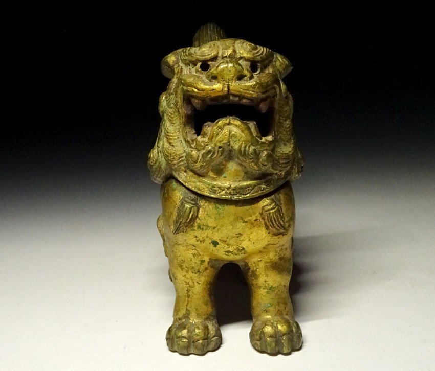 Product name: 緑屋c■ 平安 金寿堂 金銅向獅子 香炉 共箱 旧家初出し品  bnit/10-063/5-4#80